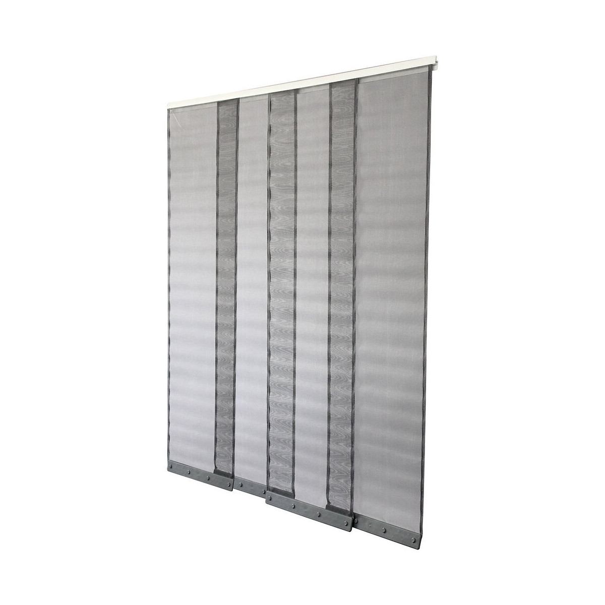 Moustiquaire rideau pour porte se composant de 4 bandes en fibre de verre, lestées à 80gr permettant le repositionnement automatique du rideau lors du passage. Coloris gris.