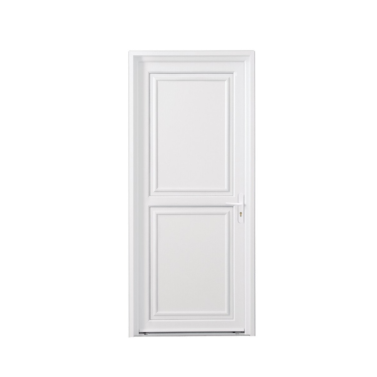 Porte d’entrée PVCCaractéristiques : Dormant au choix avec seuil aluminium de 20 mm conforme PMR pour pose sur sol fini Quincailleries de pose livrées avec la porte Ouvrant de 60 mm avec panneau de remplissage isolant de 24 mm et parcloses moulurées Quincaillerie : Crémone à relevage 5 points Ferrage par 5 fiches à broches + cache-fiches ton blanc Double joint d'étanchéité périphérique (3 côtés sur dormant + 4 côtés sur ouvrant) Porte livrée en RAL 9016 (Voir Photo) Livrée avec Poignée à plaque en aluminium laquée blanche et barillet Performance : U=1,4 W/m².K B Fabriquée en France Dimensions : Longueur 6 cm Largeur 90 cm Hauteur 215 cm Poids : 45 kg