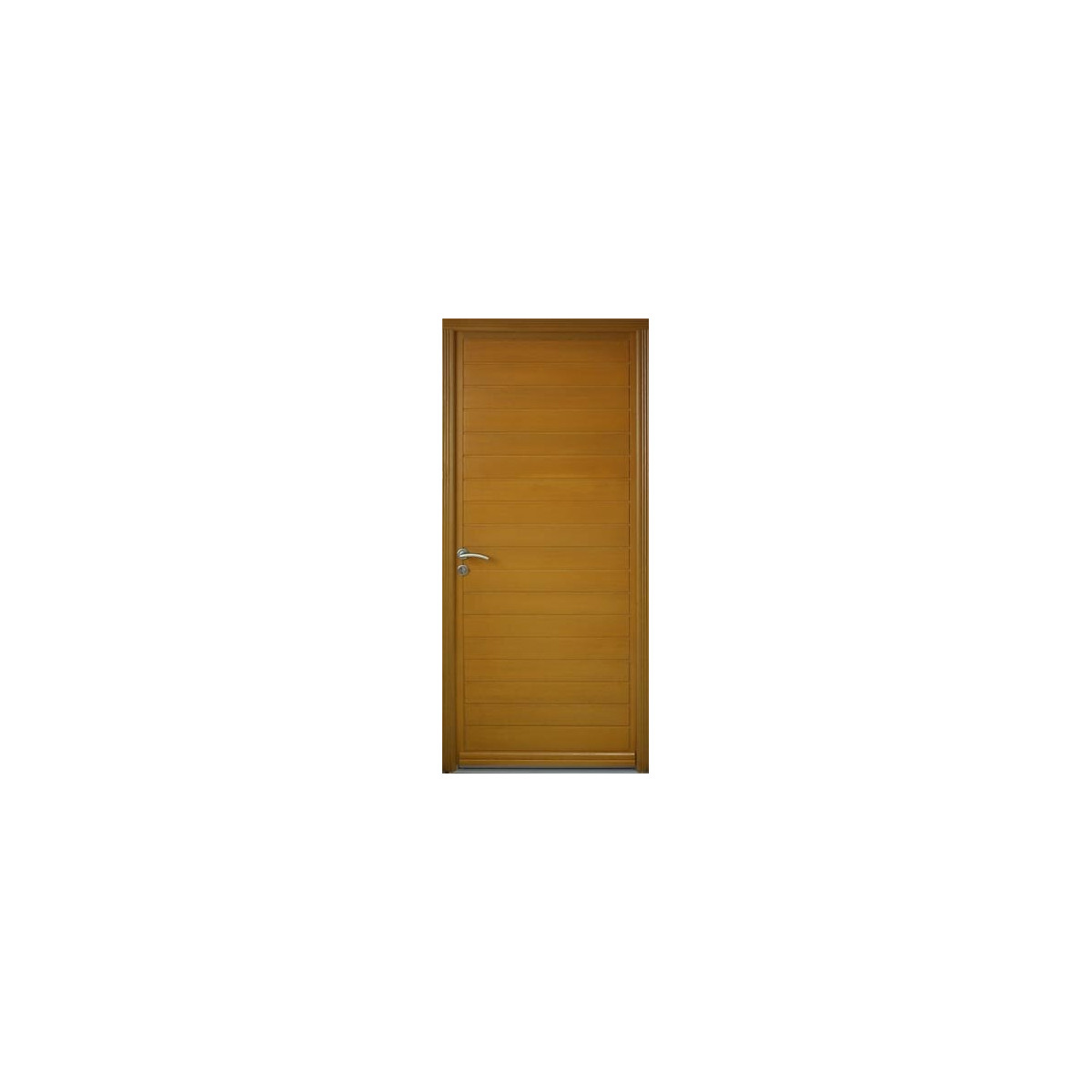 Porte d'entrée en bois exotique méranti, crémone 6 points, seuil aluminium anodisé dormant 46mm.