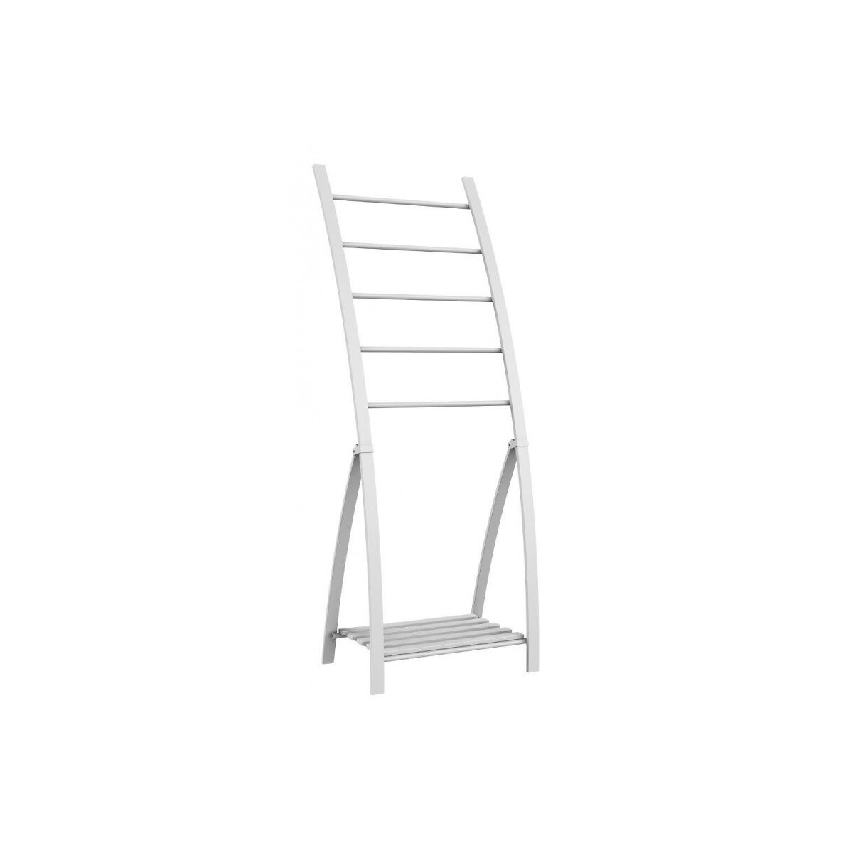 Porte serviette à poser grande hauteur Ce porte serviette contient 5 barres qui vous permettront de faire sécher de nombreuses serviettes. Couleur : Blanc mat Matière: Aluminium Dimensions: 55x42x154cmSpécifications techniques