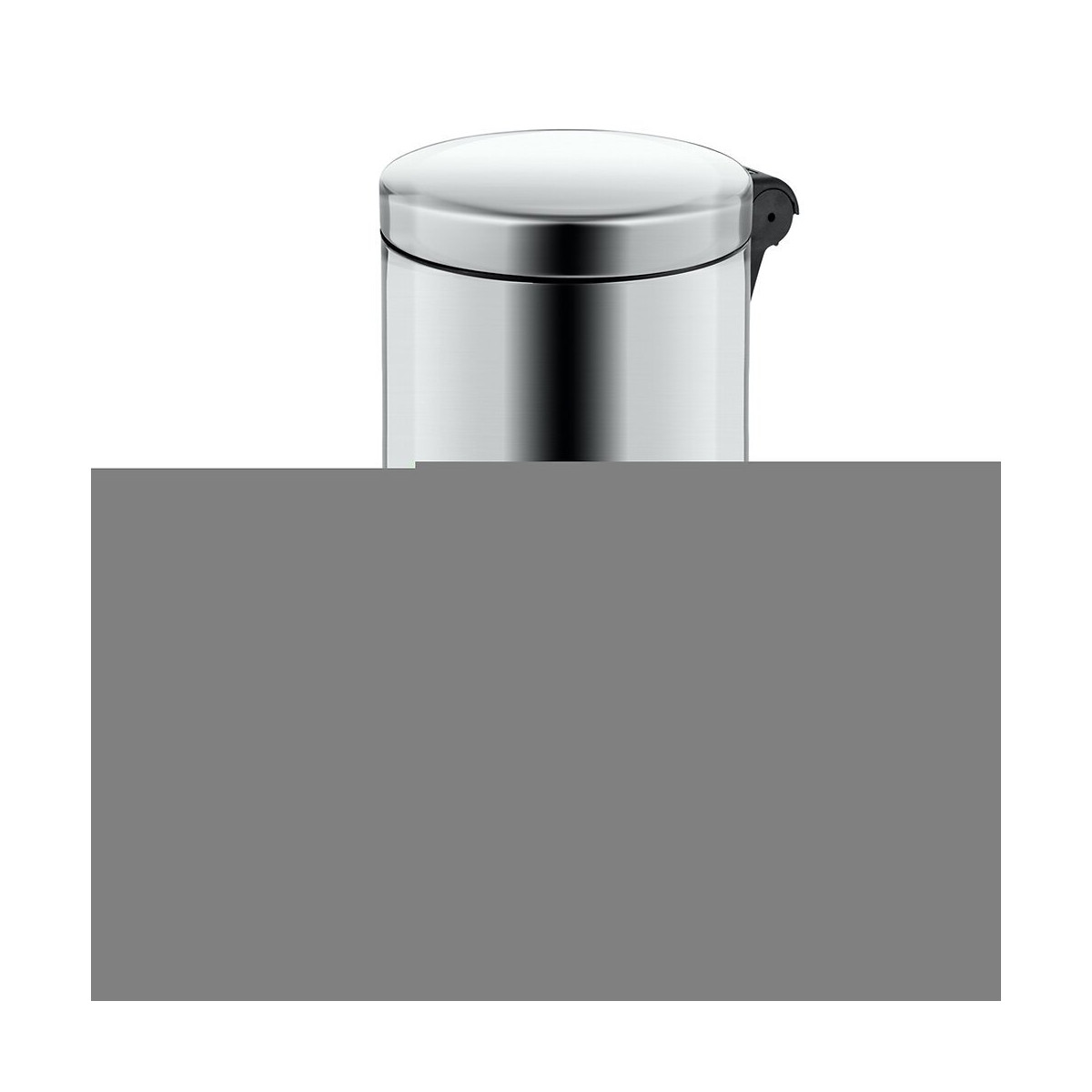 Poubelle en inox brillant avec pédale antidérapante en métal, anse de transport et seau en plastique amovible avec anse métal. Dimensions : diamètre 30.5 x hauteur 64,5 cmSpécifications techniques