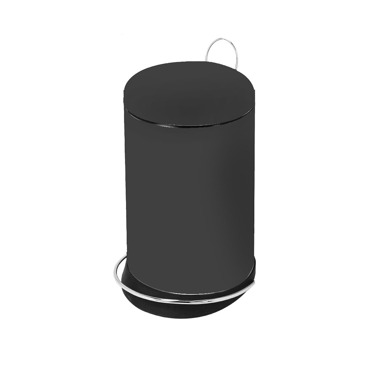 Poubelle de cuisine ronde à pédale noire en métal 20L