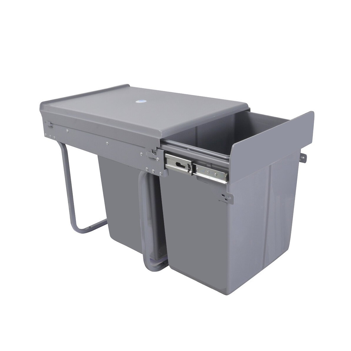 Structure en métal avec couvercle fixe et 2 bacs plastique de 20 L chacun amovibles. Dimensions : 35.5 x 48.5 x 41 cm. A installer soi-même.Spécifications techniques