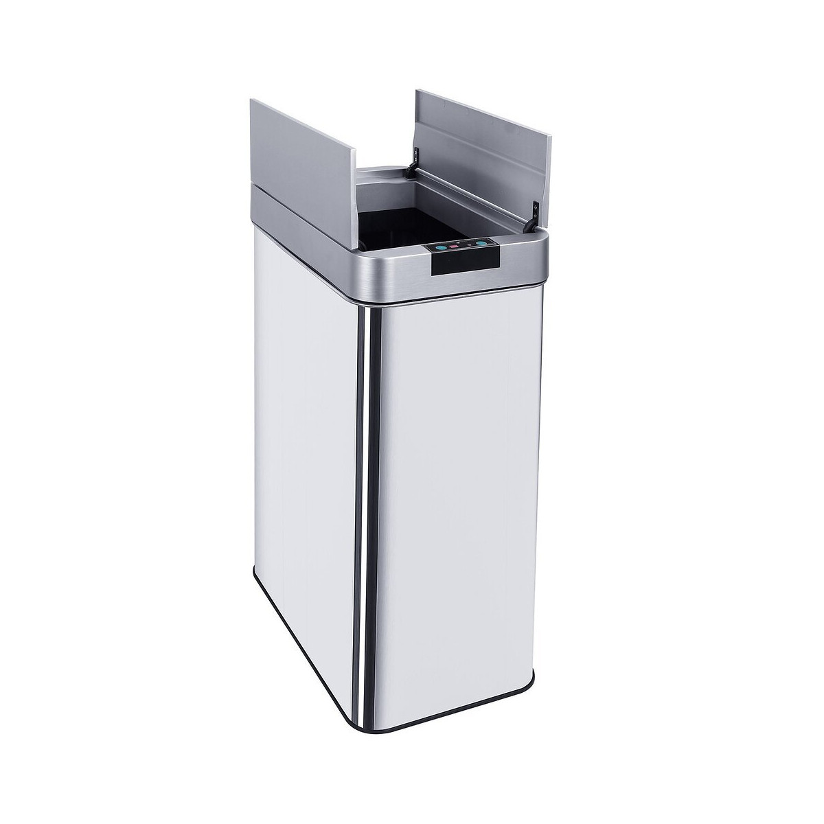 Poubelle de cuisine automatique rectangulaire avec cerclage Capacité 70L modèle SILVERLAKE en acier Inoxydable Finition Inox brossé Dimension: 41x26xH66cm Poids:5kg. Grance capacité. Poubelle Papillon. Nouveau modèle. Cette poubelle de la gamme SILVERLAKE a tout pour plaire. Nul besoin de la cacher dans un coin : faites-en un élément à part entière de votre déco. Idéal pour la cuisine, la salle de bains, le bureau et tout autre endroit de passage où vous avez besoin d'une poubelle. Nouveau Design.Poubelle avec couvercle à ouverture automatique mains libres et look moderne et élégant Corps en INOX (0.4mm) et couvercle en ABS. Fonctionne avec 4 piles LR14 (non fournies). Possibilité de brancher le produit sur une prise secteur (en achetant l'adaptateur en option) Inclus: Un cerclage plastique pour maintenir votre sac poubelle, et un anneau au sol pour la protection des sols fragiles. Poubelle intelligente qui fonctionne avec un système infra-rouge et vous évite tout contact avec le couvercle de la poubelle. Pratique et hygiénique, le couvercle s'ouvre et se referme automatiquement lorsque vous passez votre main ou un objet à 15 cm au-dessus de la cellule photo électrique. Modèle durable, léger et résistant aux taches et aux traces de doigts. Réduit la prolifération bactérienne et prévient la diffusion des odeurs. Ses matériaux lisses (fer non-corrosif INOX fin et ABS) facilitent son entretien. Plus qu'une poubelle, un meuble design. Il n'est pas utile de se baisser pour jeter ses déchets. Poubelle Stable. Base antidérapante. Fermeture silencieuse et Anti-Traces de Doigts. Fermeture anti-odeurs.