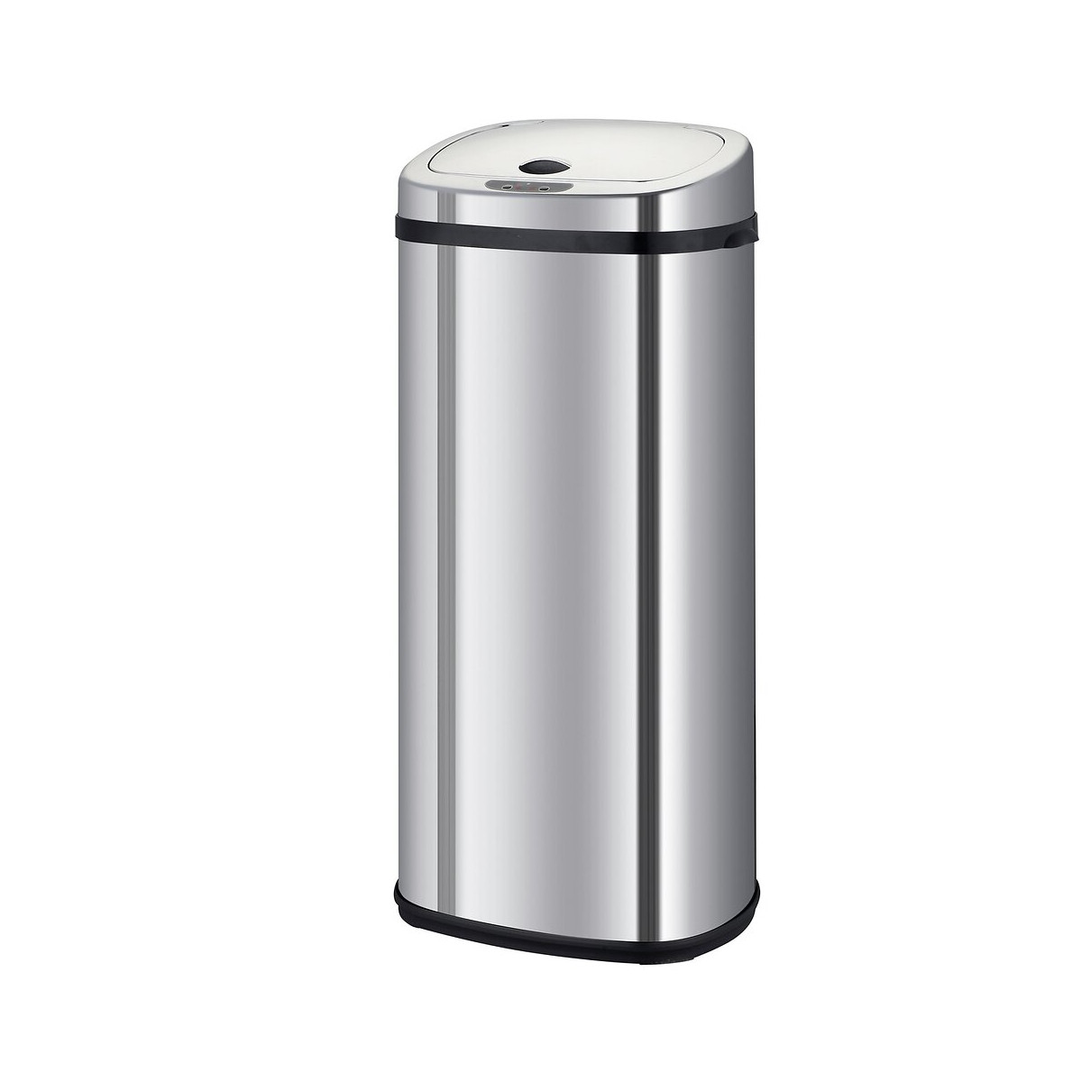 Poubelle de cuisine automatique rectangulaire avec cerclage Capacité 42L modèle LARGO en acier Inoxydable Finition Inox poli miroir. Dimension: 32x25xH64cm Poids:2.4kg. Cette poubelle de la gamme LARGO a tout pour plaire. Nul besoin de la cacher dans un coin : faites-en un élément à part entière de votre déco. Idéal pour la cuisine, la salle de bains, le bureau et tout autre endroit de passage où vous avez besoin d'une poubelle. Nouveau Design. Poubelle avec couvercle à ouverture automatique mains libres et look moderne et élégant Corps en INOX (0.4mm) et couvercle en ABS. Fonctionne avec 4 piles LR06 (non fournies). Inclus: Un cerclage plastique pour maintenir votre sac poubelle, et un anneau au sol pour la protection des sols fragiles. Poubelle intelligente qui fonctionne avec un système infra-rouge et vous évite tout contact avec le couvercle de la poubelle. Pratique et hygiénique, le couvercle s'ouvre et se referme automatiquement lorsque vous passez votre main ou un objet à 15 cm au-dessus de la cellule photo électrique. Modèle durable, léger et résistant aux taches et aux traces de doigts. Réduit la prolifération bactérienne et prévient la diffusion des odeurs Possibilité de maintenir le couvercle ouvert grâce aux boutons OPEN / CLOSE (pour une ouverture prolongée). Ses matériaux lisses (fer non-corrosif INOX fin et ABS) facilitent son entretien. Plus qu'une poubelle, un meuble design. Il n'est pas utile de se baisser pour jeter ses déchets. Poubelle Stable. Base antidérapante. Fermeture silencieuse et Anti-Traces de Doigts. Fermeture anti-odeurs.Spécifications techniques