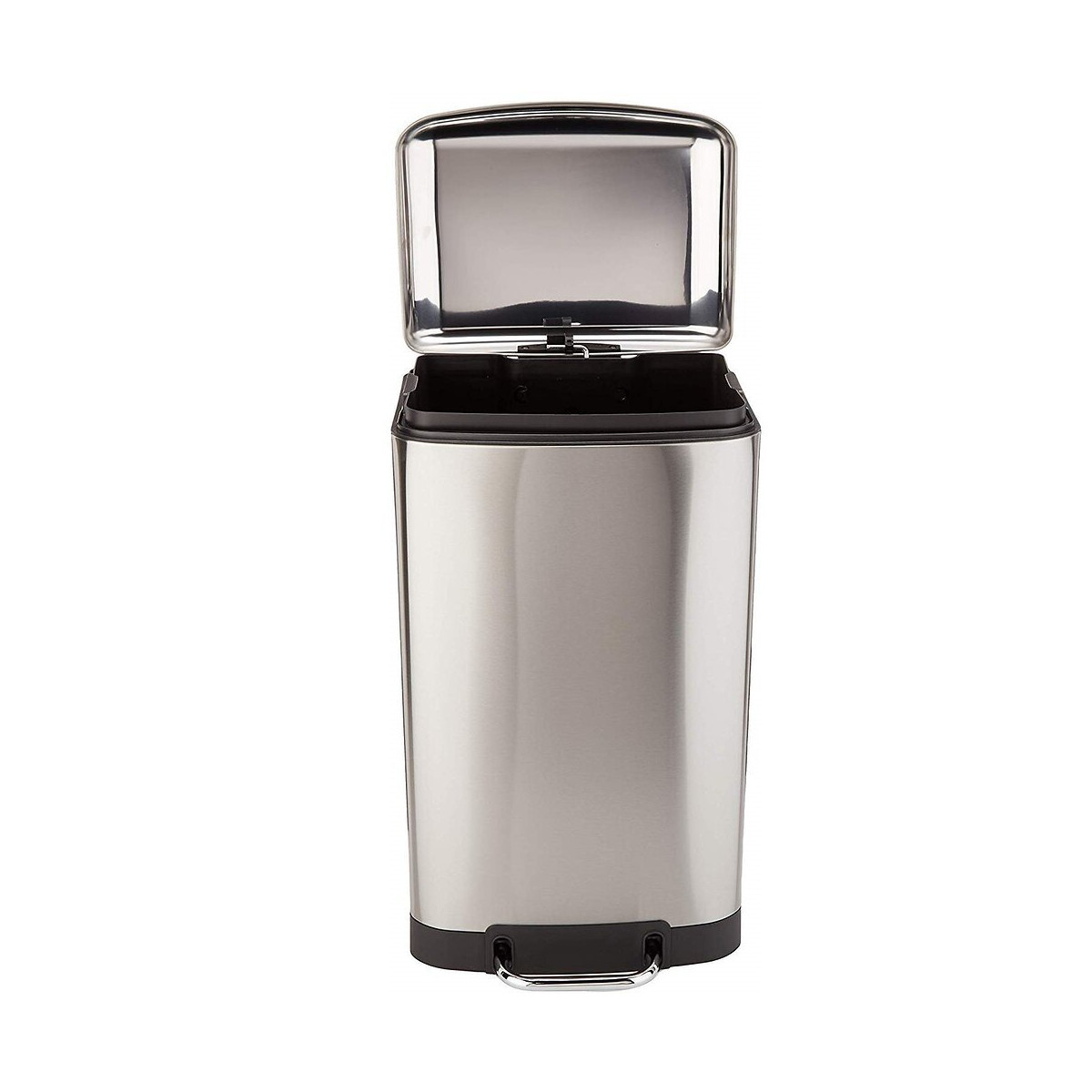 Poubelle de cuisine à pédale rectangulaire avec seau Capacité 40L modèle GREENWICH en acier Inoxydable Finition Inox brossé Dimension: 38x35xH67cm Poids:5.7kg Corps et couvercle en acier INOX (0.4mm) . Inclus: Un seau pour maintenir votre sac poubelle, et un bord de protection en plastique pour la protection des sols fragiles. Poubelle avec pédale au pied manuelle. Matériaux robustes. Mécanisme de pédale solide. Très simple d'utilisation. Fermeture insonore et anti-odeurs. Silencieuse grâce à son système d'amortisseur et de fermeture ralentie. Ouverture facile grâce à sa large pédale. Qualité professionnelle. Finition haut de gamme. Facile à déplacer grâce à une poignée de transport solide. Facile à nettoyer grâce au seau intérieur en plastique Pratique et hygiénique. Ses matériaux lisses (fer non-corrosif INOX) facilitent son entretien Plus qu'une poubelle, un meuble design. Il n'est pas utile de se baisser pour jeter ses déchets. Poubelle Stable. Base antidérapante. Fermeture silencieuse et Anti-Traces de Doigts. Cette poubelle a tout pour plaire. Nul besoin de la cacher dans un coin : faites-en un élément à part entière de votre déco. Idéal pour la cuisine, la salle de bain, le bureau, la chambre, la buanderie et tout autre endroit de passage où vous avez besoin d'une poubelle. Look moderne et élégant.