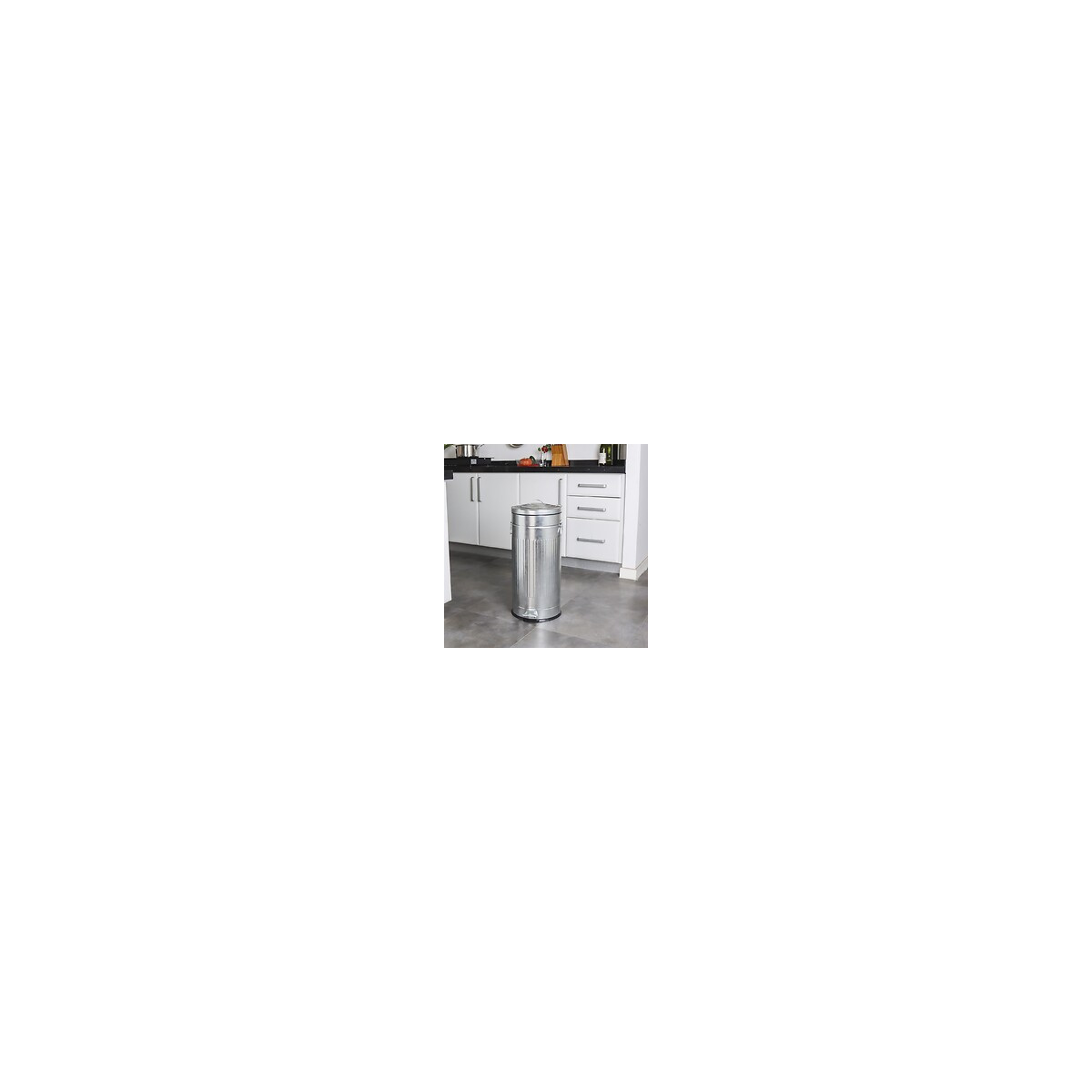 Poubelle de cuisine à pédale ronde avec seau Capacité 30L modèle BROOKLYN en acier Inoxydable Finition Galva Dimension: Ø30xH69cm Poids:2.9kg. Corps et couvercle en acier INOX (0.4mm). Style industriel Inclus: Un seau amovible avec anse pour maintenir votre sac poubelle, et un anneau au sol pour la protection des sols fragiles. Poubelle avec pédale au pied manuelle. Matériaux robustes. Mécanisme de pédale solide. Très simple d'utilisation. Fermeture insonore et anti-odeurs. Silencieuse grâce à son système d'amortisseur et de fermeture ralentie. Ouverture facile grâce à sa large pédale. Qualité professionnelle. Finition haut de gamme. Facile à déplacer grâce à une poignée de transport solide. Facile à nettoyer grâce au seau intérieur en plastique Pratique et hygiénique. Ses matériaux lisses (fer non-corrosif INOX) facilitent son entretien Plus qu'une poubelle, un meuble design. Il n'est pas utile de se baisser pour jeter ses déchets. Poubelle Stable. Base antidérapante. Fermeture silencieuse et Anti-Traces de Doigts. Cette poubelle a tout pour plaire. Nul besoin de la cacher dans un coin : faites-en un élément à part entière de votre déco. Idéal pour la cuisine, la salle de bain, le bureau, la buanderie et tout autre endroit de passage où vous avez besoin d'une poubelle. Look moderne et élégant. Style industriel vintageSpécifications techniques