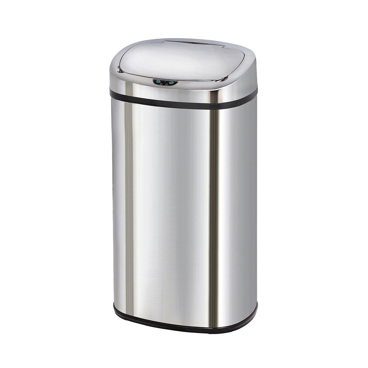 Poubelle de cuisine automatique rectangulaire avec cerclage Capacité 68L modèle MAJESTIC en acier Inoxydable Finition poli miroir Dimension: 41x29xH76cm Poids: 4kg. Grande capacité Corps en INOX (0.4mm) et couvercle en ABS. Fonctionne avec 4 piles LR20 (non fournies). Bouton ON/OFF (pour maintenir le couvercle ouvert). Inclus: Un cerclage plastique pour maintenir votre sac poubelle, et un anneau au sol pour la protection des sols fragiles. Poubelle intelligente qui fonctionne avec un système infra-rouge et vous évite tout contact avec le couvercle de la poubelle. Pratique et hygiénique, le couvercle s'ouvre et se referme automatiquement lorsque vous passez votre main ou un objet à 15 cm au-dessus de la cellule photo électrique. Possibilité de maintenir le couvercle ouvert grâce aux boutons OPEN / CLOSE (pour une ouverture prolongée). Ses matériaux lisses (fer non-corrosif INOX fin et ABS) facilitent son entretien. Assemblage non requis. Plus qu'une poubelle, un meuble design. Il n'est pas utile de se baisser pour jeter ses déchets. Poubelle Stable. Base antidérapante. Fermeture silencieuse et Anti-Traces de Doigts
