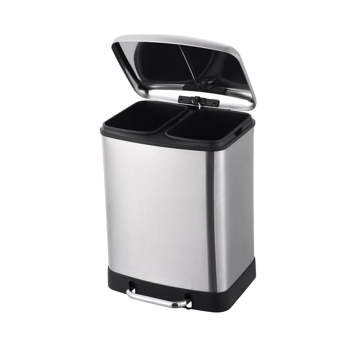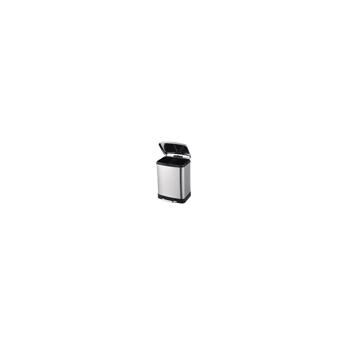 Poubelle de cuisine à pédale rectangulaire avec seau Capacité 24L (12+12) modèle GREENWICH en acier Inoxydable. 2 seaux pour le tri sélectif Finition Inox brossé couvercle bombé Dimension: 37x34xH50cm. Poubelle de recyclage. Corps et couvercle en acier INOX (0.4mm) . Inclus: 2 seaux pour maintenir votre sac poubelle, et un bord de protection en plastique pour la protection des sols fragiles. Poubelle avec pédale au pied manuelle. Matériaux robustes. Mécanisme de pédale solide. Très simple d'utilisation. Fermeture insonore et anti-odeurs. Silencieuse grâce à son système d'amortisseur et de fermeture ralentie. Ouverture facile grâce à sa large pédale. Qualité professionnelle. Finition haut de gamme. Facile à déplacer grâce à une poignée de transport solide. Facile à nettoyer grâce au seau intérieur en plastique Pratique et hygiénique. Ses matériaux lisses (fer non-corrosif INOX) facilitent son entretien. Idéal pour le tri de vos déchets : Bouteilles en plastique, verre, journaux, carton, et ordures ménagères. Plus qu'une poubelle, un meuble design. Il n'est pas utile de se baisser pour jeter ses déchets. Poubelle Stable. Base antidérapante. Fermeture silencieuse et Anti-Traces de Doigts. Cette poubelle a tout pour plaire. Nul besoin de la cacher dans un coin : faites-en un élément à part entière de votre déco. Idéal pour la cuisine, la salle de bain, le bureau, la chambre, la buanderie et tout autre endroit de passage où vous avez besoin d'une poubelle. Look moderne et élégant.