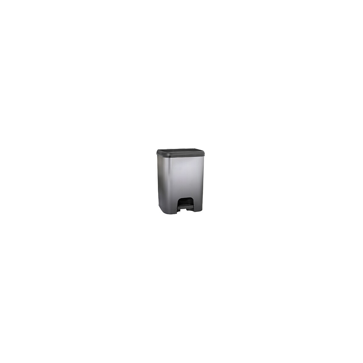Poubelle de cuisine à pédale avec bague pour fixer les sacs poubelle 28L modèle SEATTLE en plastique IML aspect métal Dimension: 33x30xH45cm Dimension poubelle couvercle relevé 33x30xH68cm Poids:1.24kg. Fabriqué en Espagne Corps et couvercle en plastique. Inclus: un cerclage pour maintenir votre sac poubelle, et un bord de protection en plastique pour la protection des sols fragiles avec système anti-dérapant. Poubelle avec pédale au pied manuelle. Système d'ouverture prolongée pratique. Mécanisme de pédale solide. Très simple d'utilisation. Ouverture facile grâce à sa large pédale. Facile à déplacer. Facile à nettoyer. Pratique et hygiénique. Plus qu'une poubelle, un meuble design. Il n'est pas utile de se baisser pour jeter ses déchets. Poubelle Stable. Base antidérapante. Anti-Traces de Doigts. Cette poubelle a tout pour plaire. Nul besoin de la cacher dans un coin : faites-en un élément à part entière de votre déco. Idéal pour la cuisine, la salle de bain, le bureau, la chambre, la buanderie et tout autre endroit de passage où vous avez besoin d'une poubelle. Look moderne et élégant.