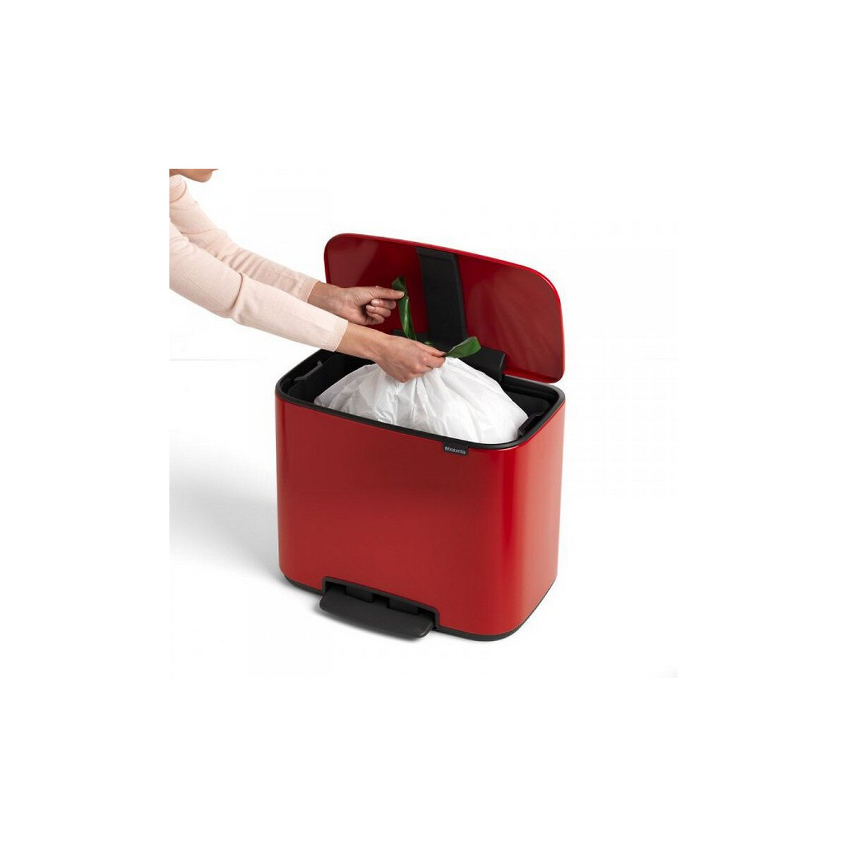 121401 - Poubelle Bo Pedal Bin Brabantia 121401 dotée d'un seau intérieur XL de 36 L - suffisamment de place pour tous vos déchets. Le couvercle se ferme doucement et le fonctionnement de la pédale est ultra léger. Parfait pour les tâches plus importantes - le couvercle reste ouvert. Nettoyage facile - seau intérieur en plastique amovible. Gain de place - s'adapte parfaitement contre un mur ou dans un coin. Pieds antidérapants - protègent le sol et maintiennent la poubelle en équilibre. Élimination aisée des déchets sans débordement - large ouverture. Échantillon de sacs poubelles Brabantia PerfectFit (code R) compris - faciles à installer, sans débordement disgracieux. - Type de produit : Poubelle. Nombre de compartiment : 1. Capacité : 36 L. Coloris : Rouge passion. Dimensions (HxPxL) : 44 x 36,5 x 54 cm.