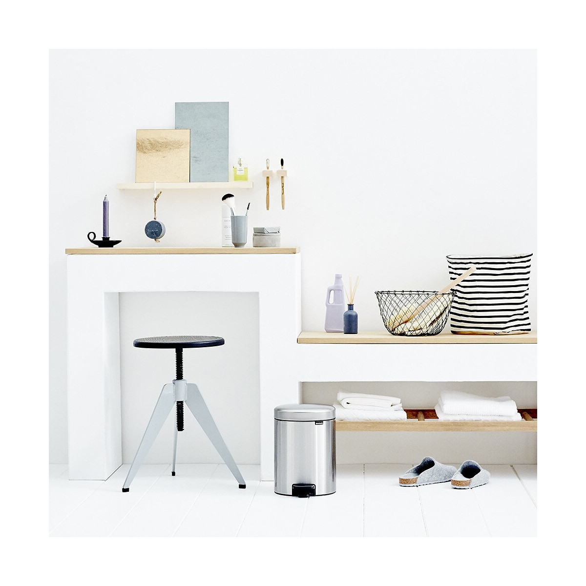 112645 - Cette poubelle à pédale NewlCon Brabantia 112645 de 5 litres est parfaite pour la salle de bains, les toilettes ou encore une chambre d?enfant.Les poubelles à pédale newIcon ne sont pas seulement des beautés emblématiques, elles sont également des travailleurs fiables. Avec leur fonction unique de fermeture douce, leur couvercle se referme en silence et sans effort. En achetant cette poubelle, vous soutenez The Ocean Cleanup à remplir sa mission - débarrasser les océans des déchets plastique.Facile à utiliserFermeture douce et système à pédale très facile à utiliser.Fermeture anti odeur.Base antidérapante ? protège le sol et garde la poubelle stable.Échantillon de sacs poubelle PerfectFit Brabantia (code W) inclus ? sac facile à placer sans débordement disgracieux. - Coloris : Matt Steel. Matière seau intérieur : Plastique. Capacité : 5 Litres. Diamètre : 20,5 cm. Hauteur : 29,1 cm. Largeur : 20,5 cm. Profondeur : 27,2 cm.
