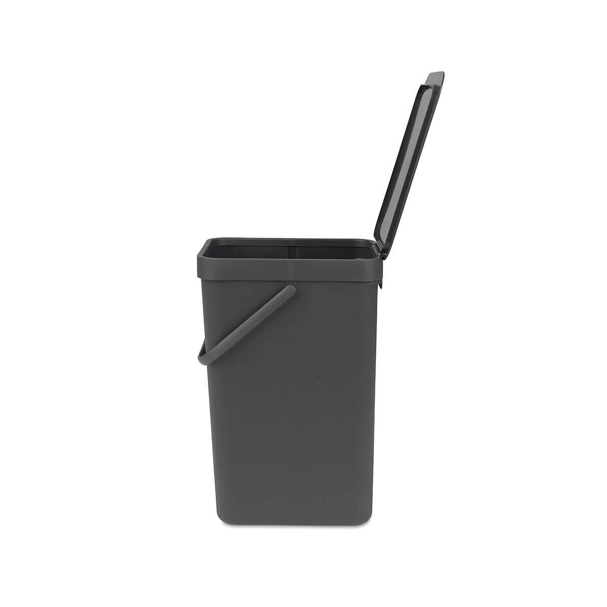 109966 - Poubelle Sort & Go Brabantia 109966 pour organiser vos déchets comme vous le souhaitez. Vous pouvez utiliser cette poubelle de 16 litres pour les bouteilles, les conserves, les emballages ou tout autre chose que vous souhaitez trier. La large anse et la prise pratique à la base de chaque modèle permettent de vider facilement son contenu. Sacs poubelle Brabantia PerfectFit adaptés, avec lien de fermeture (code D) ? faciles à placer. Peut être fixée au mur ou posée au sol ? support mural inclu. Compacte et gain de place ? idéale pour le tri des déchets à la maison. Facile à installer ? support, fixations et instructions fournies. - Forme : Rectangulaire. Capacité : 16 L. Coloris : Gris. Ouverture manuelle. Sacs compatibles : sacs PerfectFit Taille D. Hauteur : 40,1 cm. Largeur : 22,0 cm. Profondeur : 27,9 cm.