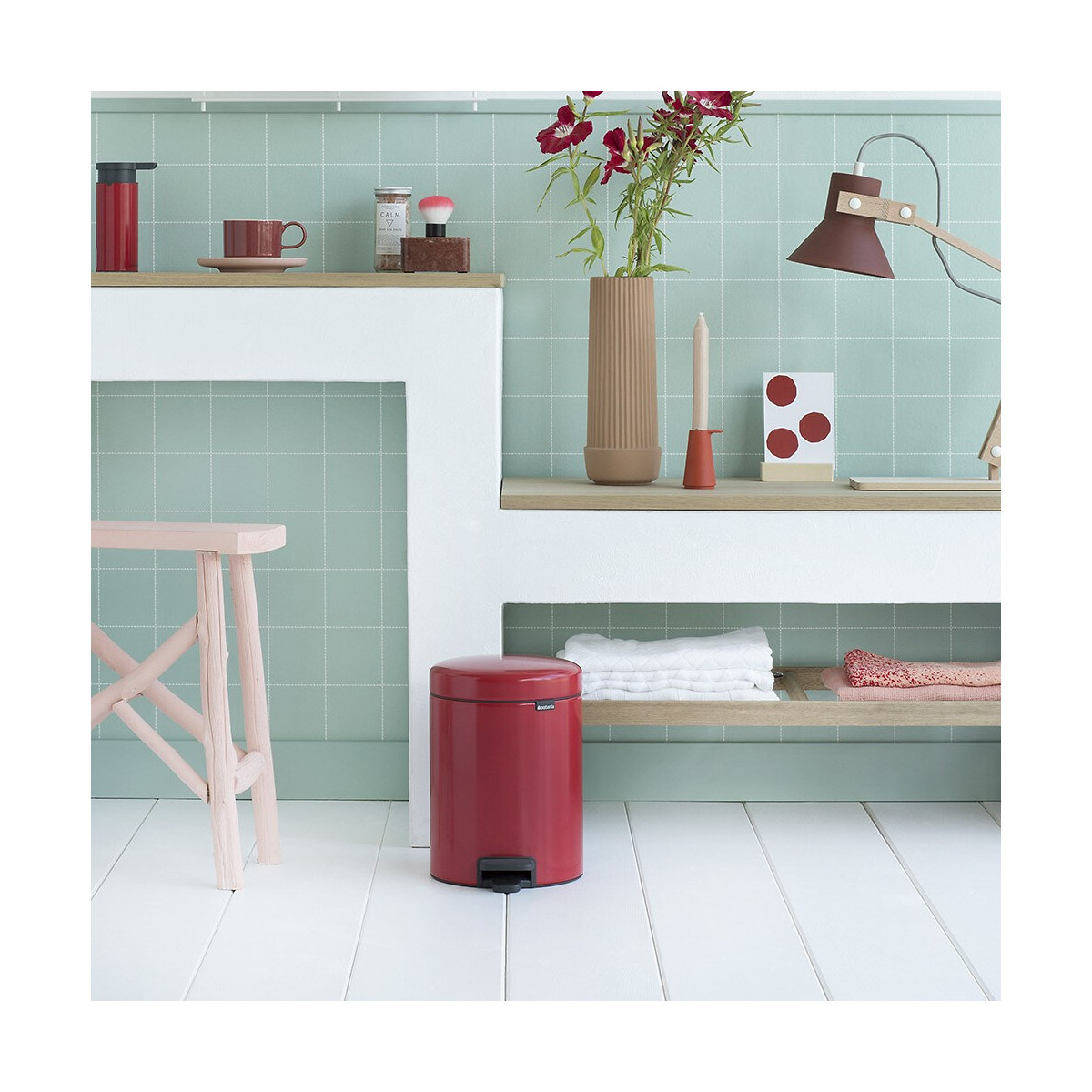 112089 - Cette poubelle à pédale NewlCon Brabantia 112089 de 5 litres est parfaite pour la salle de bains, les toilettes ou encore une chambre d?enfant.Les poubelles à pédale newIcon ne sont pas seulement des beautés emblématiques, elles sont également des travailleurs fiables. Avec leur fonction unique de fermeture douce, leur couvercle se referme en silence et sans effort. En achetant cette poubelle, vous soutenez The Ocean Cleanup à remplir sa mission - débarrasser les océans des déchets plastique.Facile à utiliserFermeture douce et système à pédale très facile à utiliser.Fermeture anti odeur.Base antidérapante ? protège le sol et garde la poubelle stable.Échantillon de sacs poubelle PerfectFit Brabantia (code W) inclus ? sac facile à placer sans débordement disgracieux. - Coloris : Passion red. Matière seau intérieur : Plastique. Capacité : 5 Litres. Diamètre : 20,5 cm. Hauteur : 29,1 cm. Largeur : 20,5 cm. Profondeur : 27,2 cm.