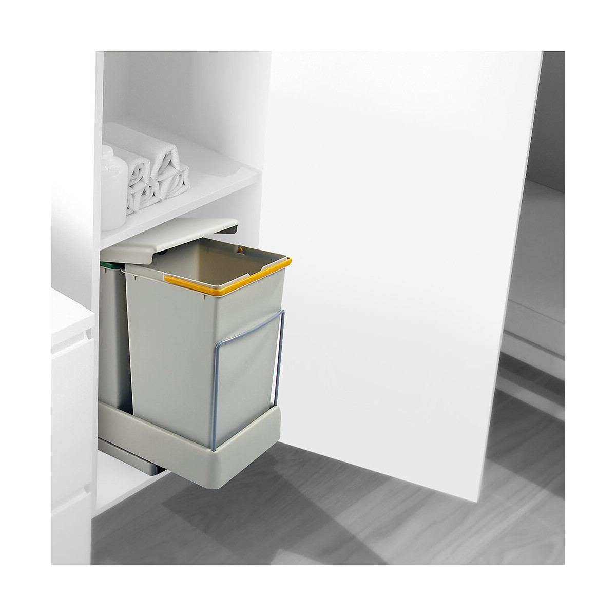 Poubelle pour recycleret calsser les déchets domestiques spécialement conçue pour être installée dans des meubles de cuisine. La base extractible de ces conteneur à ordures est fixée à la partie inférieure des modules. Accès facile grâce à l’extraction et fermeture automatiques des conteneurs en ouvrant la porte du module.Spécifications techniques