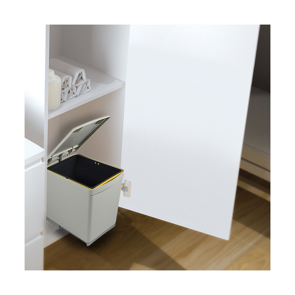 Poubelles pour recycler et classer les déchets domestiques spécialement conçues pour être installées dans des meubles de cuisine. Ces conteneurs à ordures s'intègrent dans les tiroirs. Le mécanisme d'ouverture automatique du couvercle, fixé au latéral du meuble, facilite l’accès.Spécifications techniques
