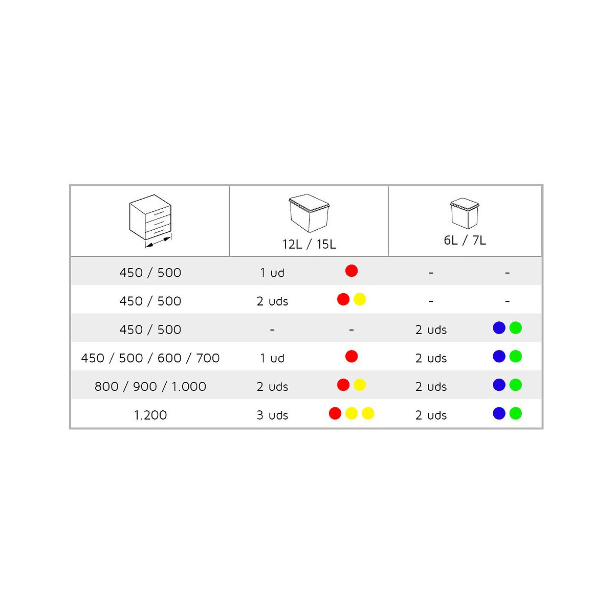 Les poubelles pour tiroir Recycle Emuca , intégrées dans les meubles de la cuisine, permettent de séparer plus facilement les déchets de façon discrète et organisée. Elles sont disponibles en deux hauteurs avec une capacité utile de 6 litres à 15 litres.Ces poubelles sont dotées d’une anse colorée afin de mieux identifier les déchets, ainsi que pour faciliter leur extraction, et donc leur vidage et nettoyage.Spécifications techniques
