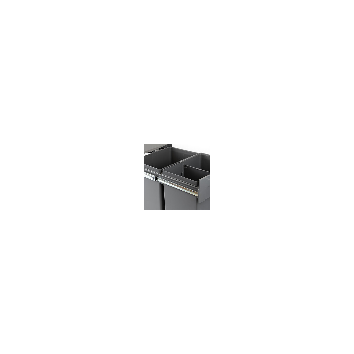 Poubelle de recyclage amovible idéal pour le recyclage et le tri des déchets ménagers. Conçu pour l'intégration dans les meubles de cuisine offrant un accès plus facile aux poubelles. Il a une capacité total de 40 litres et est valable pour les modules avec des dimensions utiles minimales de 364 mm de large, 500 mm de profondeur et 395 mm de hauteur.La structure amovible de cette poubelle est fixée au bas des modules, permettant une extraction totale en douceur manuellement grâce aux glissières à billes qu'elle intègre. Il se caractérise par sa facilité d'installation grâce aux vis incluses dans le produit.L'ensemble comprend deux conteneurs amovibles de 20 litres avec une poignée simple pour un retrait facile et un séparateur pour l'un des conteneurs. Fabriqué en acier et plastique gris anthracite.Spécifications techniques