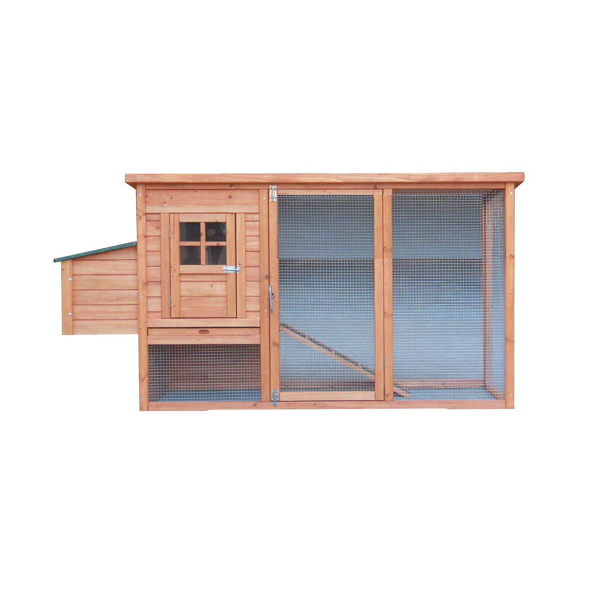 Poulailler standard Dimensions au sol : 160 x 70 cm Dimensions hors tout : 198 x 75,5 x 103 cm avec toit une pente Livré avec volière équipée d'une rampe d'accès à l'espace nuit, espace nuit fermé équipé d'une porte d'accès , un pondoir, un tiroir à déjections et 2 perchoirs Capacité : 3 à 4 poules Livré bois teinté clair et toit bitumé Garantie : 2 ans Labellisé FSC A monter soi-mêmeSpécifications techniques