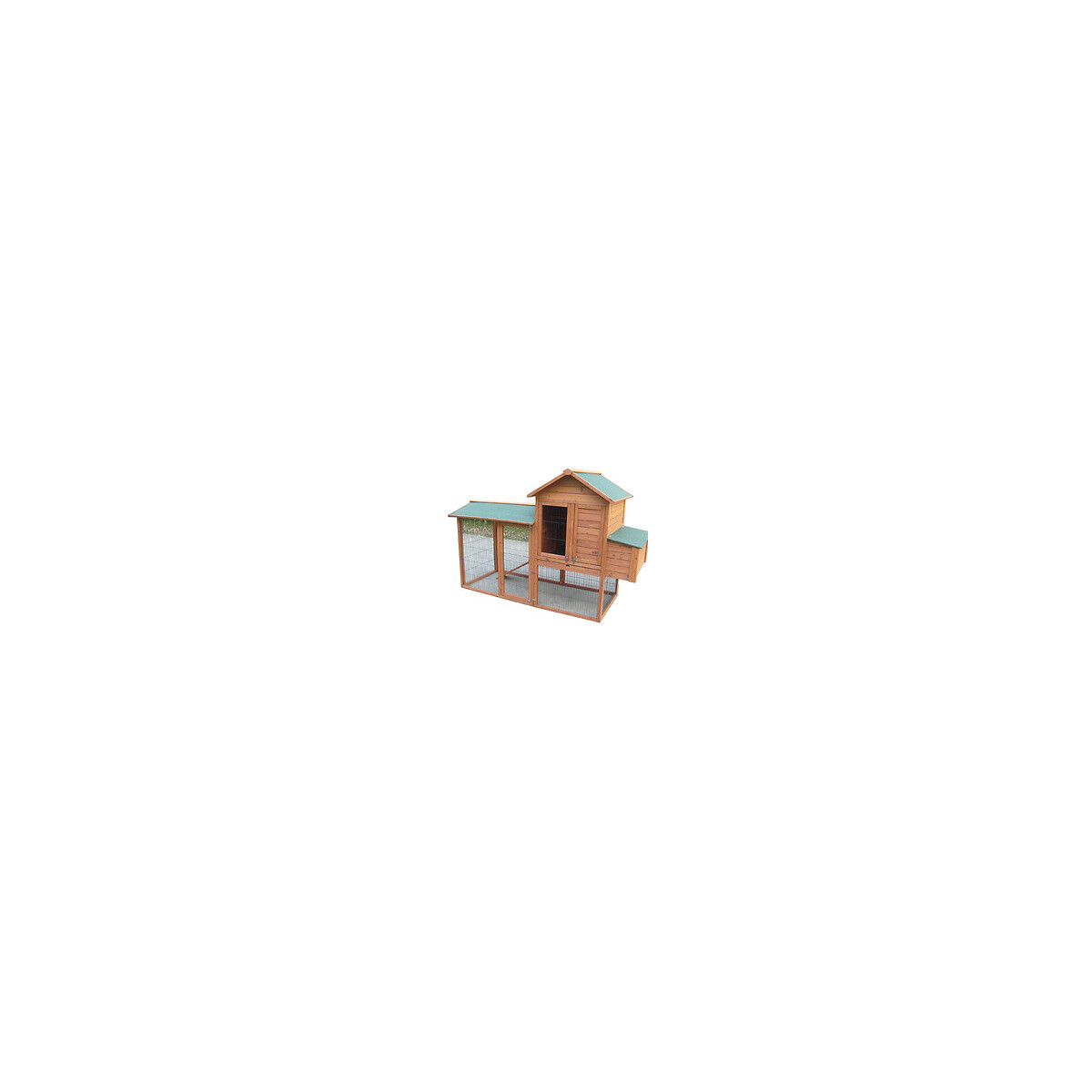 Poulailler grande taille Dimensions au sol : 186 x 76 cm Dimensions hors tout : 227 x 94 x 151 cm bi-corps Livré avec volière avec rampe d'accès, espace nuit et un pondoir avec accès pour récupération des œufs, un tiroir à déjections Capacité : 5 à 8 poules Livré bois teinté clair et toit bitumé Garantie : 2 ans Labellisé FSC A monter soi-mêmeSpécifications techniques