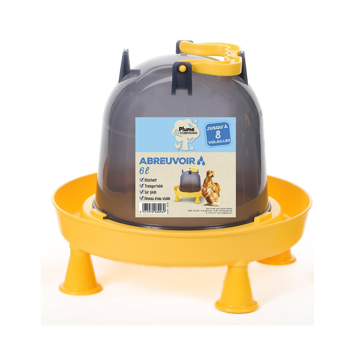 Résistant transportable sur pieds pour garder une eau propre - Niveau d'eau visible - 2 coloris au choix - Jusqu'à 8 volaillesSpécifications techniques