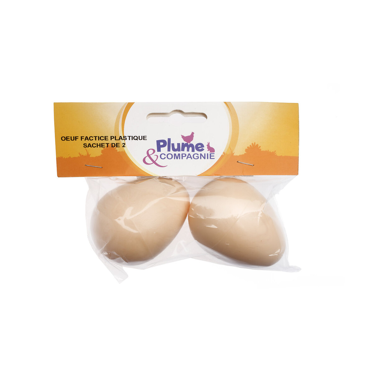 Œufs factices en plastique. Ils permettent de développer l'instinct de couvaison. Contenance : Sachet de 2 œufs.