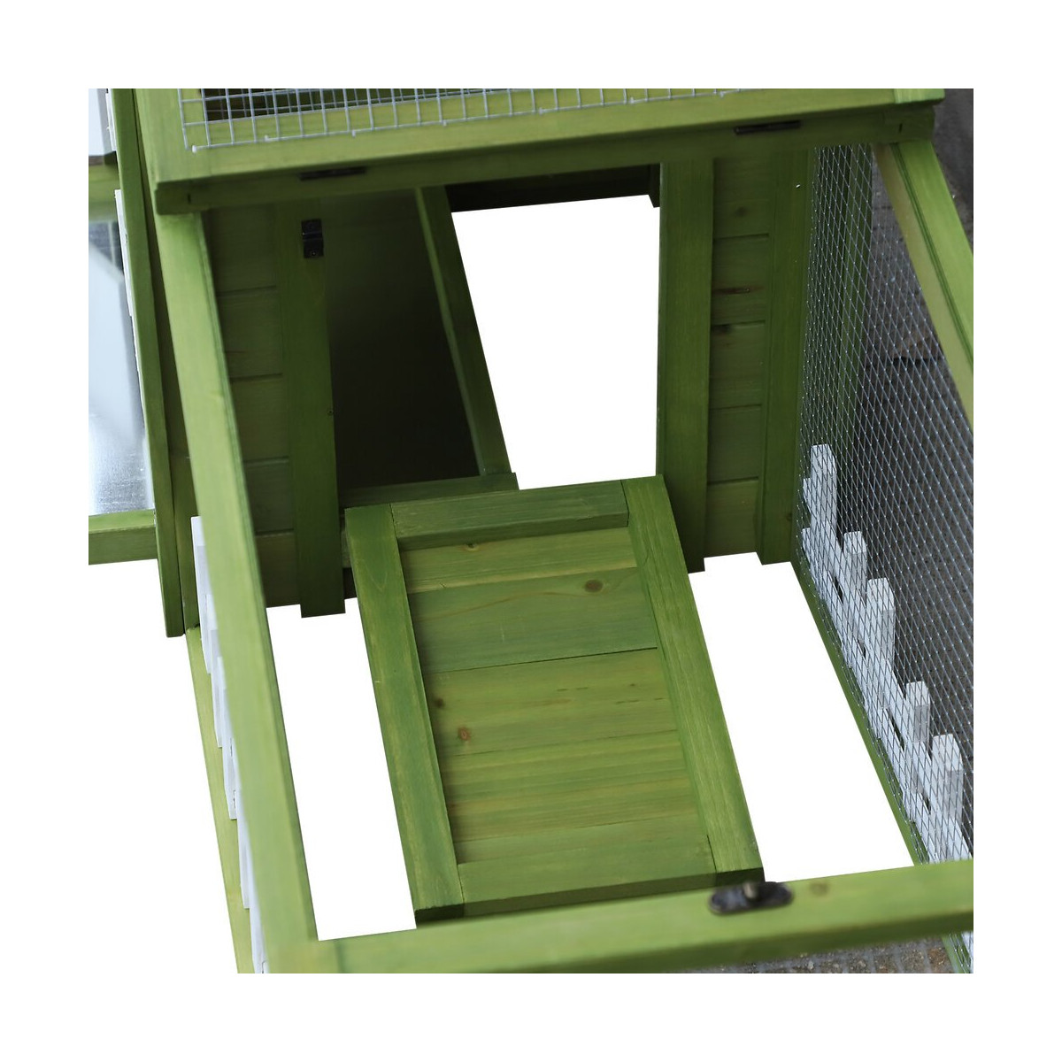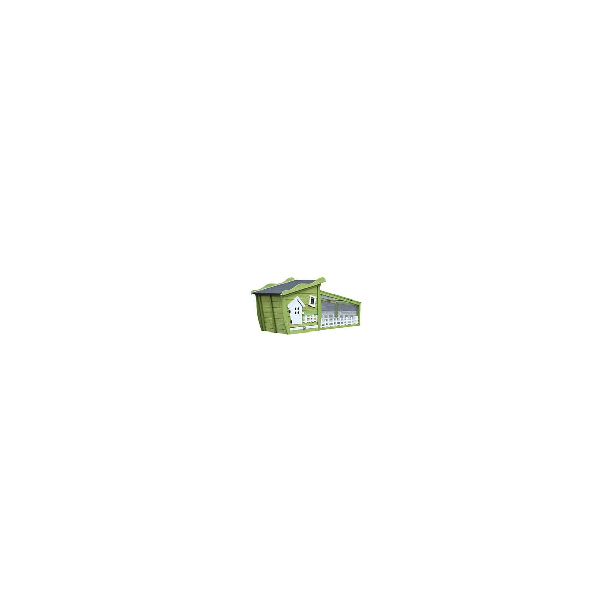Clapier Cage À Lapins Style Cabane Et Pré Dim. 155l X 55l X 65h Cm Multi-équipement Bois Massif Pin Vert Blanc