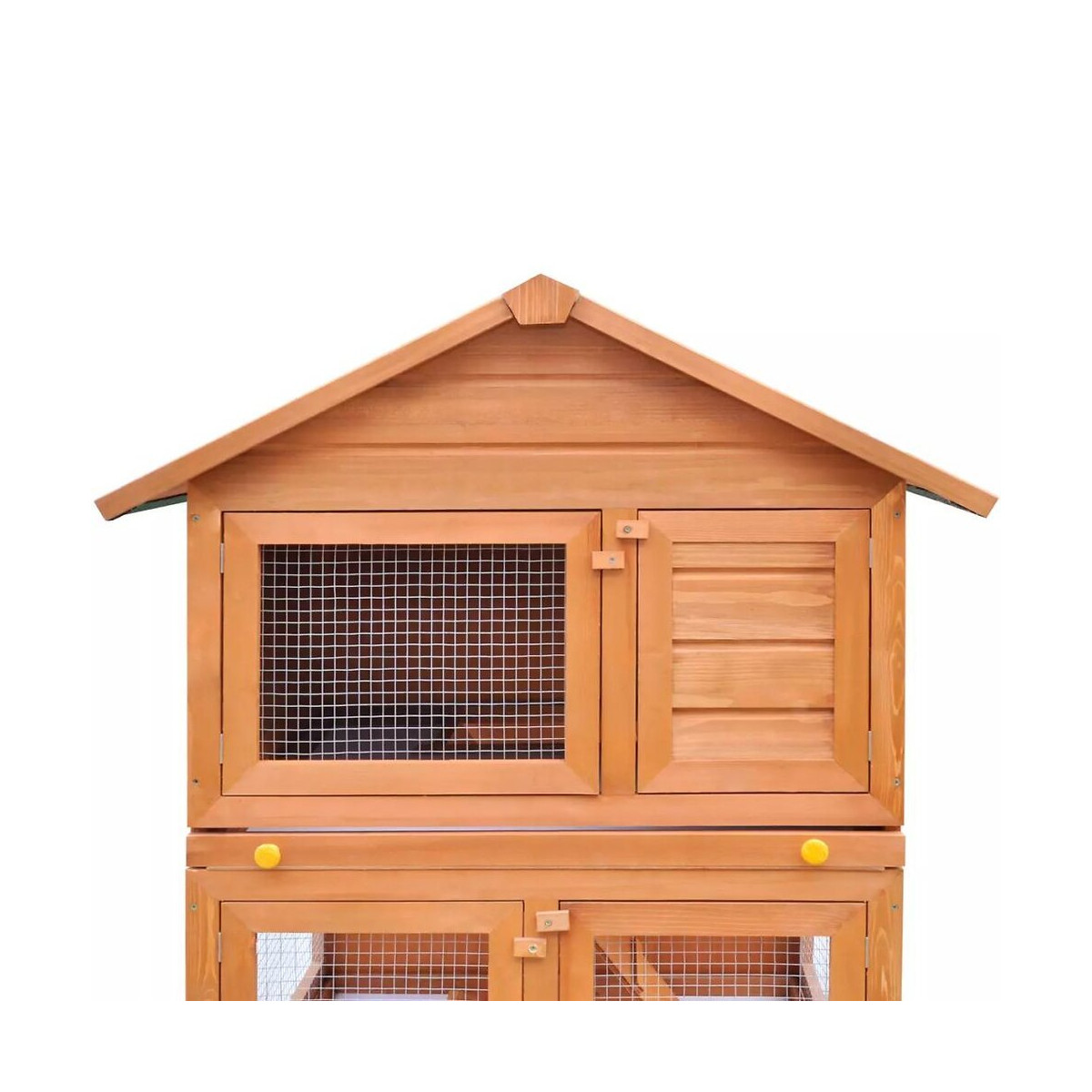 Ce clapier de qualité présente 3 étages pour vous aider à abriter vos animaux de compagnie tels que les lapins et autres petits animaux.Il dispose de plusieurs fonctions: jeu, divertissement, entrainement, ou abri de sécurité. Ce clapier à lapin permettra à vos animaux de compagnie de bénéficier d'un grand espace et les barrières aideront à éviter les comportements malicieux ou accidents inattendus. En outre, la conception de la grille en fil de fer assurera un bon contrôle de animaux de compagnie et favorise une bonne ventilation avec une bonne pénétration d'air frais. Cette cage a une structure en bois de haute qualité, ce qui la rend solide et durable pour de nombreuses années. Sa toiture verte facilitera l'évacutaition d'eau en cas de pluie, la petite pièce intérieure est conçue pour le couchage ou le repos de votre animal. Deux rampes faciles à monter reliera les étages. Deux bacs rétractables faciliteront le nettoyage. Et les portes s'ouvrent, se ferment et se verrouillent facilement grâce au verrou à loquet glissant. Cette cage pour lapin en bois à 3 étages est parfaite pour tous les petits animaux. Aménagement spacieux Taille totale: 80 x 71 x 160 cm (L x P x H) Taille de la porte en bois: 25,5 x 34 cm (P x H) Taille de la porte en fil de fer: 42 x 34 cm (P x H), 34 x 34,5 cm (P x H) Solide structure en bois de pin avec finition peinte Maillage durable du fil de fer enduit de poudre Toit vert protégé contre l'humidité sur et imperméable à l'eau Comprend une rampe antidérapante pour faciliter l'accès à l'étage supérieur Deux bacs enduits rétractables pour un entretien facile Résistant aux intempéries Facile à assemblerSpécifications techniques