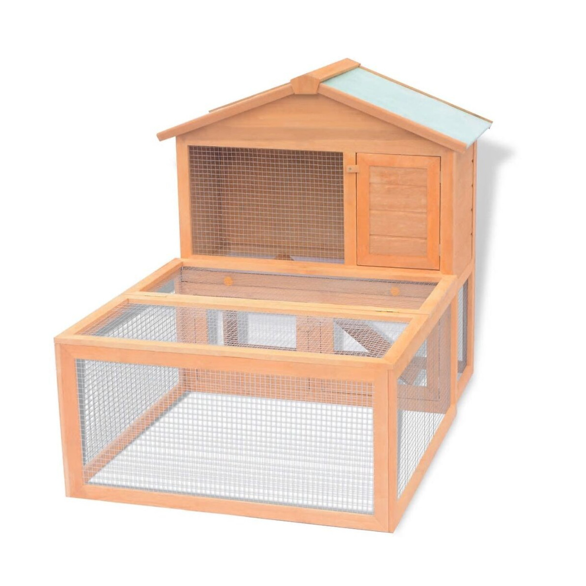 Ce clapier de qualité avec 2 étages fournit un grand endroit confortable pour garder des lapins et des petits animaux. Il a plusieurs usages : jouer, faire de l'exercice, s'entraîner ou simplement garder vos animaux en toute sécurité. Cette cage fournit à vos animaux domestiques beaucoup d'espace tandis que le grillage en fer serré aide à prévenir les accidents inattendus. La construction de grillage en fil de fer assure la surveillance des animaux et permet à vos animaux d'avoir suffisamment d'air frais. La cage d'animaux est construite avec le cadre en bois de sapin, ce qui le fait un enclos solide et sécuritaire qui dure pendant des années. Son toit vert protège l'intérieur contre la pluie tandis que l'intérieur confortable rend le coin de couchage parfait. L'échelle facile à monter mène du niveau inférieur au niveau supérieur. Les portes se ferment facilement. Cette cage en bois pour animaux est parfaite pour les petits animaux domestiques. Matériau : Bois de sapin avec finition peinte Dimensions totales : 144 x 100 x 100 cm (L x l x H) Trellis métallique en fer durable Protection contre l'humidité grâce au toit étanche vert Avec une échelle antidérapante pour faciliter l'accès à l'étage supérieur Un plateau coulissant pour un nettoyage facile Résistance aux intempéries Assemblage facile AVERTISSEMENT : Afin d'éviter le renversement, ce produit doit être utilisé avec le dispositif de fixation murale fourniSpécifications techniques