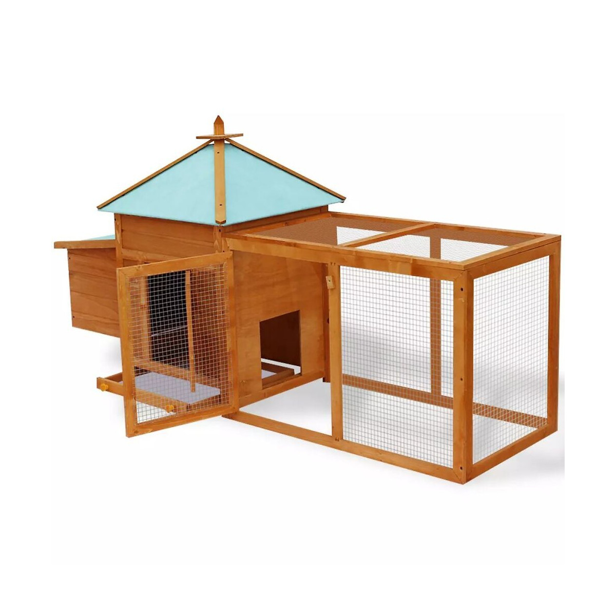 Ce poulailler de luxe de haute qualité est adapté pour garder les poulets, les poules, les canards et beaucoup d'autres petits animaux.Il possède une fabrication de qualité et est complet avec une maison, un pondoir et une très grande cour avec grillage en fer, ce qui vous permet de garder un œil sur vos volailles et empêche également les accidents imprévus. La maison est fabriquée en bois premium traité et peint pour résister dans un environnement extérieur.Le tissu vert imperméable à l'eau sur le toit protège de la pluie et crée une zone de repos confortable à l'intérieur de la maison.La maison peut être grande ouverte pour permettre à l'air frais d'entrer, et fermé pour créer un environnement contrôlé plus chaud. C'est un poulailler haut de gamme qui sera idéal pour vos animaux de compagnie et aura fière allure dans votre jardin. Matériau du poulallier:Contre-plaqué Dimensions totales:190 x 64 x 100 cm (L x P x H) Dimensions de la maison:64 x 64 x 100 cm (L x P x H) Dimensions du pondoir:95 x 55 x 63 cm (L x P x H) Dimensions de la cour:95 x 55 x 63 cm (L x P x H) Pondoir inclus Assemblage facileSpécifications techniques