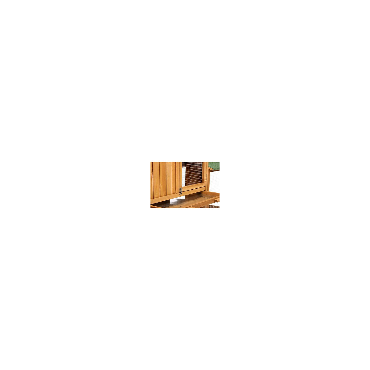 Poulailler avec rampe & portes grillagées Vous aimeriez avoir des poules dans votre jardin, avoir de bons oeufs frais et profiter de l'engrais organiques des poules ? En effet les poules sont des animaux de compagnie amusants et utiles pour la biodiversité ! Ce poulailler leur permettra d'être dans un endroit adapté, avec assez d'espace pour se déplacer à l'intérieur de celui-ci. Elles pourront aller à l'étage ou au rez-de-chaussée, au soleil ou à l'ombre par exemple. Ce poulailler sera d'un confort idéal pour vos poules. Caractéristiques techniques : Matière : Bois de sapin traité Couleur principale : Bois Pour quels animaux : Volatiles (poules/canards), rongeurs, lapins Nombre maximum d'animaux : 2 à 3 Tiroir déjection amovible : Oui Toit bitumé waterproof : Oui Résiste aux intempéries : Oui Nombre d'étages : 2 Rez-de-chaussée : Grillagé, avec 2 portes 1er étage : Abri isolé pour favoriser la pondaison & le repos Nombre de rampes d'accès : 1 rampe large Entretien : Nettoyer régulièrement le toit des débris végétaux qui pourraient s'y poser. Vous pouvez appliquer une lasure pour allonger sa longévité. Dimensions : Dimensions totales : 147 x 66 x 85 cm Dimensions des portes : 30 x 45 cm Conditionnement : Conditionné dans un colis de : 64 x 97 x 25 cm / 23 kg * Livraison pas de porte * Garantie 2 ansSpécifications techniques