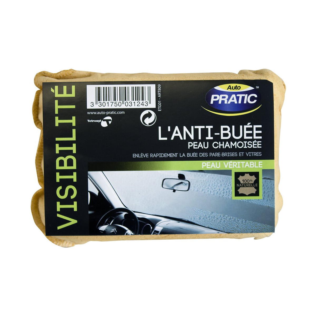 Le Tampon Anti-Buée Peau Chamoisée Auto Pratic enlève rapidement la buée des pare-brises et vitres.