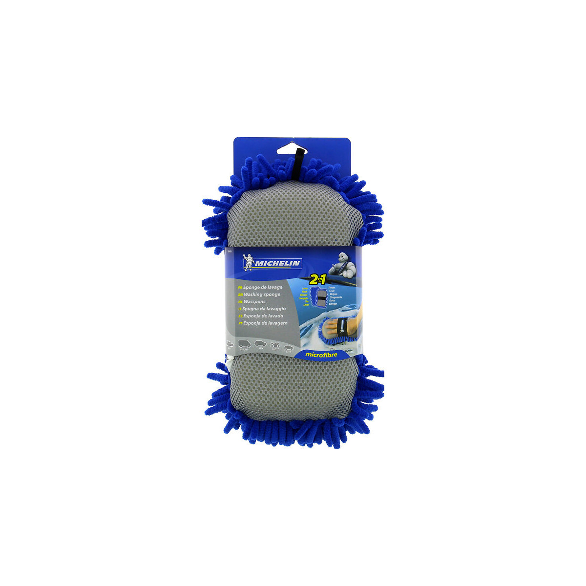 Deux faces pour un lavage efficace: - Face microfibre chenillée pour laver en profondeur carrosseries et surfaces vitrées. - Face filet pour éliminer les insectes et les tâches sans rayer. Elastique de maintien pour une meilleure prise en main. Entretien:Bien humidifier avant emploi. Après usage, rincer à l'eau claire et laisser sécher. Composition: 100% polyester