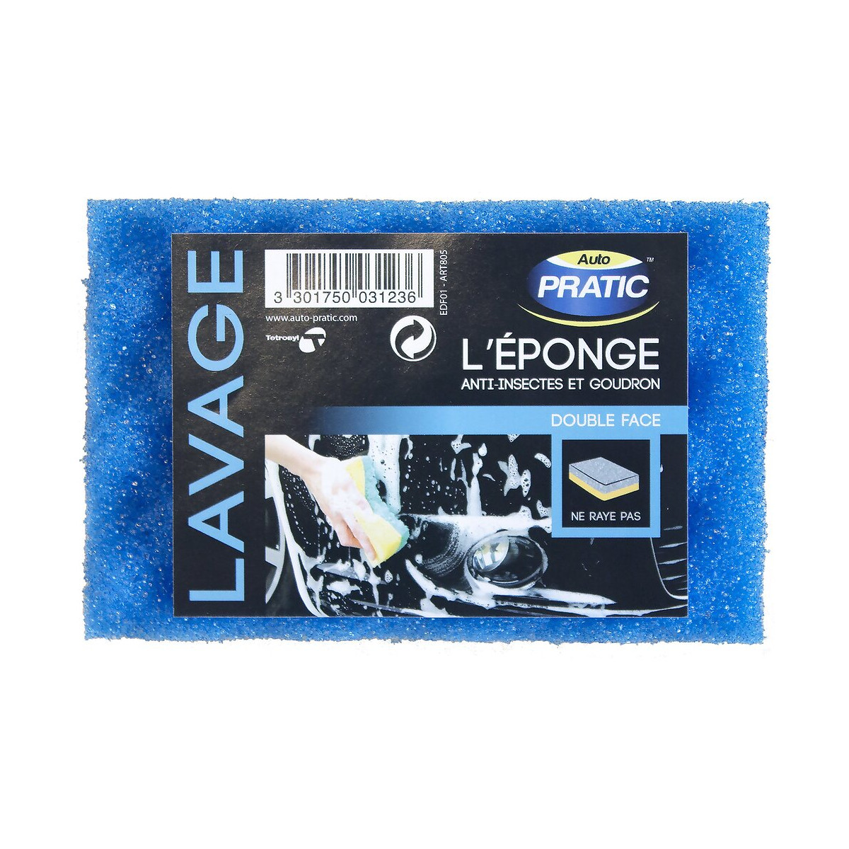 Cette éponge double face permet de gratter et de dissoudre les traces d'insectes et de goudron.