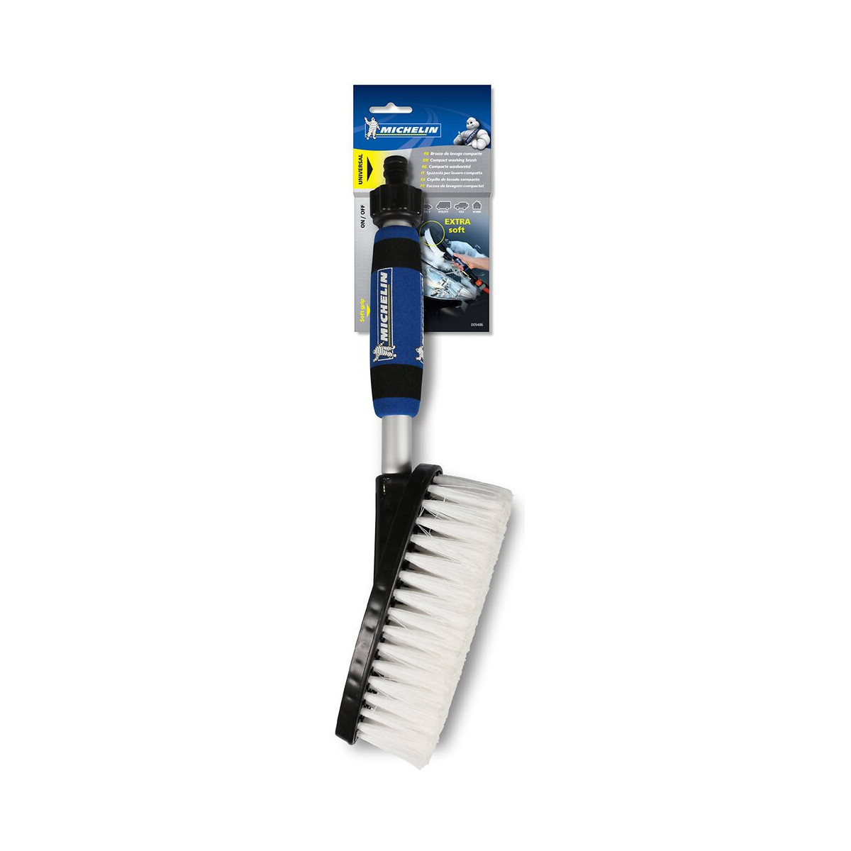 Brosse de lavage à raccorder sur le tuyau d'arrosage. Compacte et confortable grâce à son manche en aluminium et son grip en mousse.