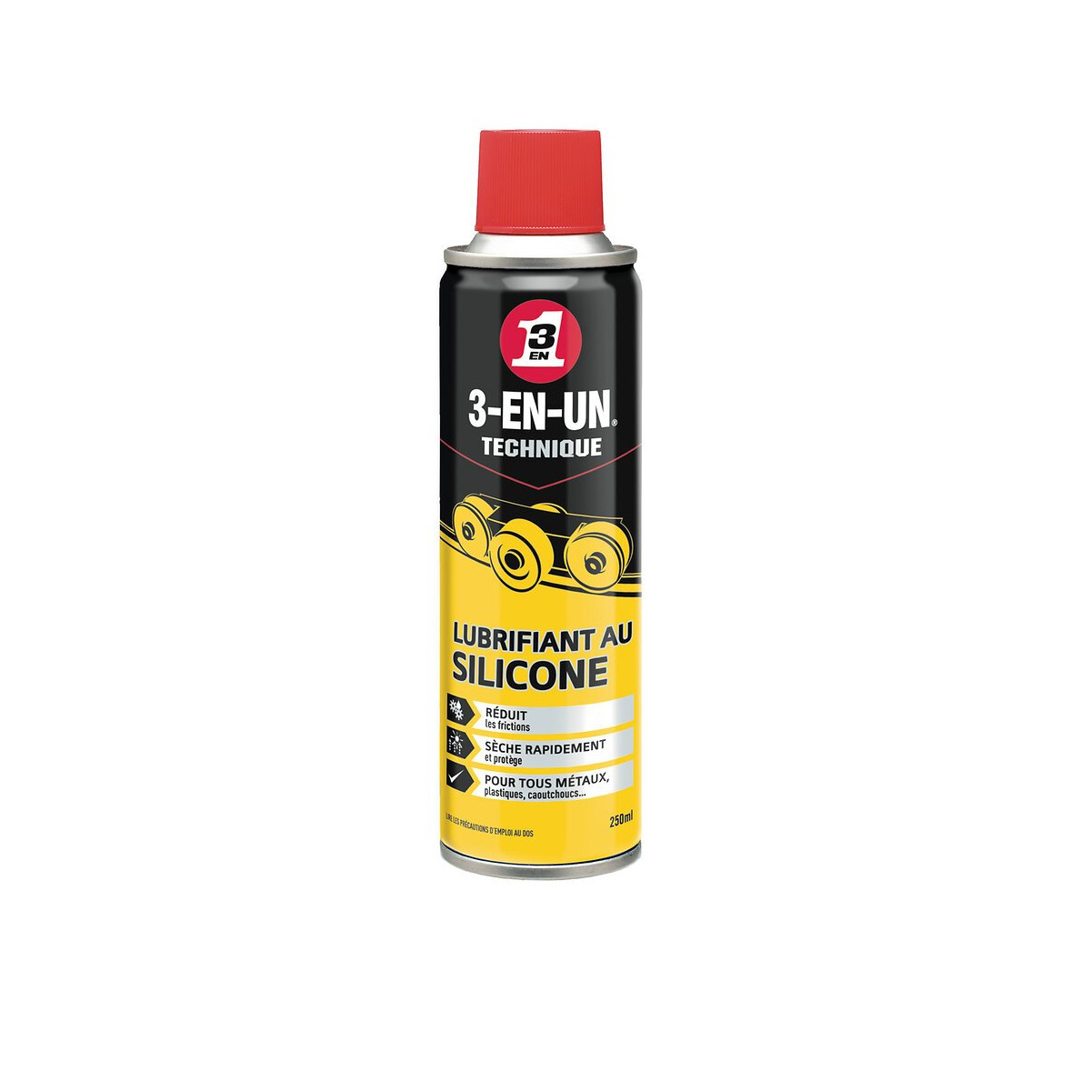Formulé pour une utilisation sur tous métaux, plastiques, caoutchoucs et vinyles, compatible également avec le bois, le Lubrifiant au Silicone 3-EN-UN® TECHNIQUE facilite le glissement des pièces en mouvement, évite les frottements et prévient ou supprime les grincements. De plus, grâce à la couche protectrice de silicone qu’il dépose, il protège les équipements électriques : contacteurs, câbles, faisceaux d’allumageSpécifications techniques