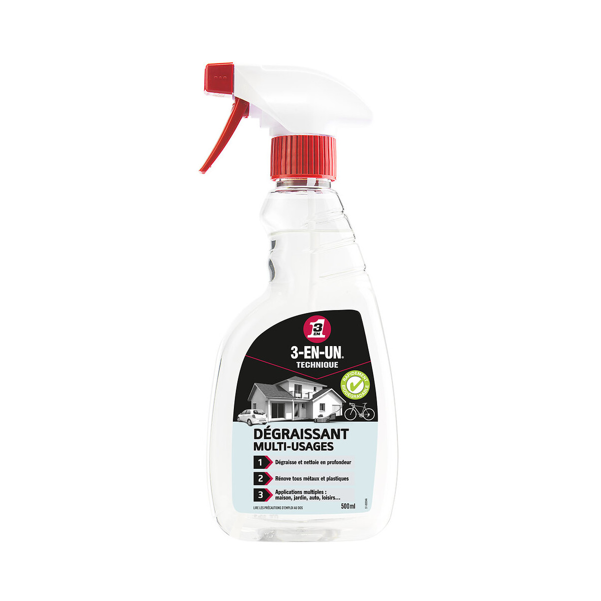 Le Dégraissant Multi-Usages 3-EN-UN® TECHNIQUE a été spécialement conçu pour rénover une multitude d’équipements de jardin et de loisirs, que ce soit pour le bricolage, le jardinage, les deux roues, l’auto, les véhicules de loisirs ou encore les bateaux. Formulé pour préserver l’aspect neuf du matériel, il permet un dégraissage rapide et efficace des surfaces métalliques et plastiques, en intérieur comme en extérieur. Il est facile d’utilisation grâce à son format “spray”.Spécifications techniques