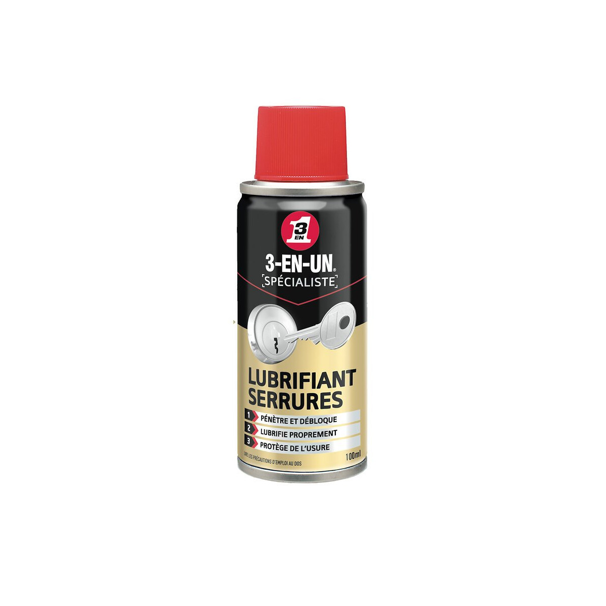 Le Lubrifiant Serrures 3-EN-UN® TECHNIQUE a été développé pour l’entretien de tous types de cylindres (maison, véhicules, mobilier, cadenas). À l’aide de sa formule sans graisse ni silicone, il pénètre par capillarité dans tous les micromécanismes des serrures, sans les encrasser. Outre son pouvoir débloquant instantané, il assure ainsi un fonctionnement préventif des pièces mobiles et protège durablement de la rouille, y compris en conditions extérieures.Spécifications techniques