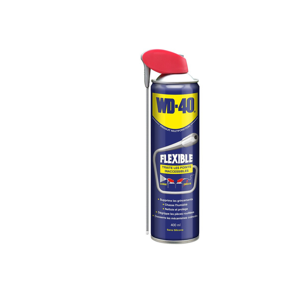 Le Produit Multifonction WD-40 protège le métal de la rouille et de la corrosion, s’insère dans les parties coincées, repousse l’humidité et lubrifie quasiment tout. Il élimine même la graisse, la saleté et plus encore de la plupart des surfaces. Développé pour les professionnels, ce produit multifonction a été développé pour faciliter le travail des pros, et ce en toute situation ! Son nouveau tube flexible d’une longueur de 18 cm peut être plié et maintenu dans la forme souhaitée. Ceci permet, tube relevé, d’atteindre de nombreux points difficiles d’accès qui nécessitent une application précise. Tube abaissé, le produit pourra être pulvérisé plus largement.Spécifications techniques