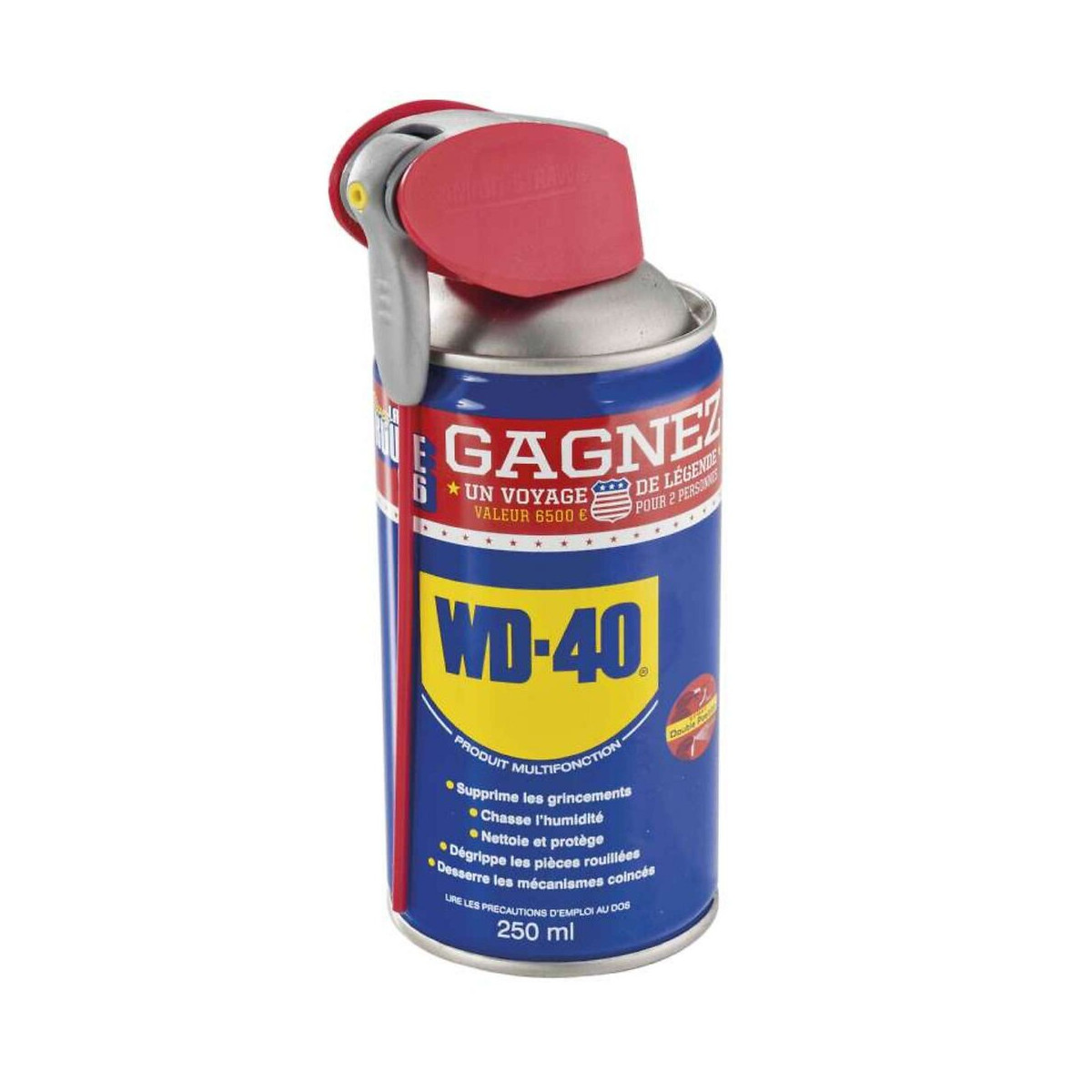 Dangereux. Respecter les précautions d'emploi.Connu comme étant « l'aérosol aux milliers d'usages », WD-40 protège le métal de la rouille et la corrosion, libère les mécanismes bloqués, repousse l'humidité et lubrifie les petits mécanismes. WD-40 est également un excellent produit nettoyant, en particulier pour éliminer les taches de graisse, de goudron ou autres marques sur la plupart des surfaces!Attention: N'utilisez pas le WD-40 près du feu, d'une source de chaleur ou d'un courant électrique. Ne laissez jamais la bouteille au soleil ou près de surfaces chaudes. Assurez-vous d'utiliser le WD-40 dans un endroit bien aéré. Ne pas ingérer ou inhaler.