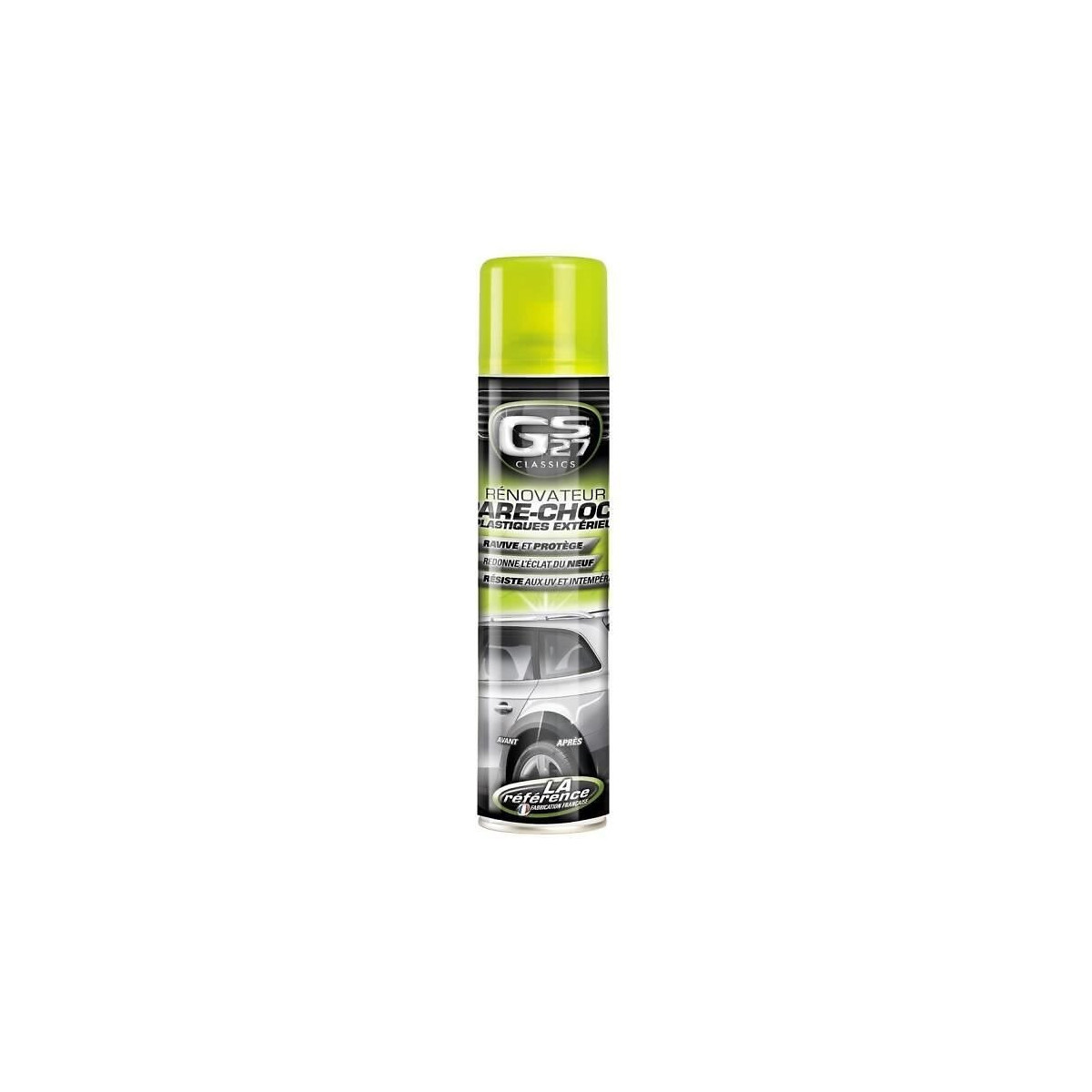 Rénove et ravive les couleurs.&bull Redonne l'aspect du neuf aux pare-chocs ternis.&bull Dépose une fine pellicule brillante et protectrice.&bull S'applique sur les pare-chocs, les bandes de protection latérales et toute finition plastique extérieure non peinte.&bull S'adapte a toutes les teintes de pare-chocs et de plastiques.Contenance: 400mlDimensions (mm) : 250 x 57 (H x l)