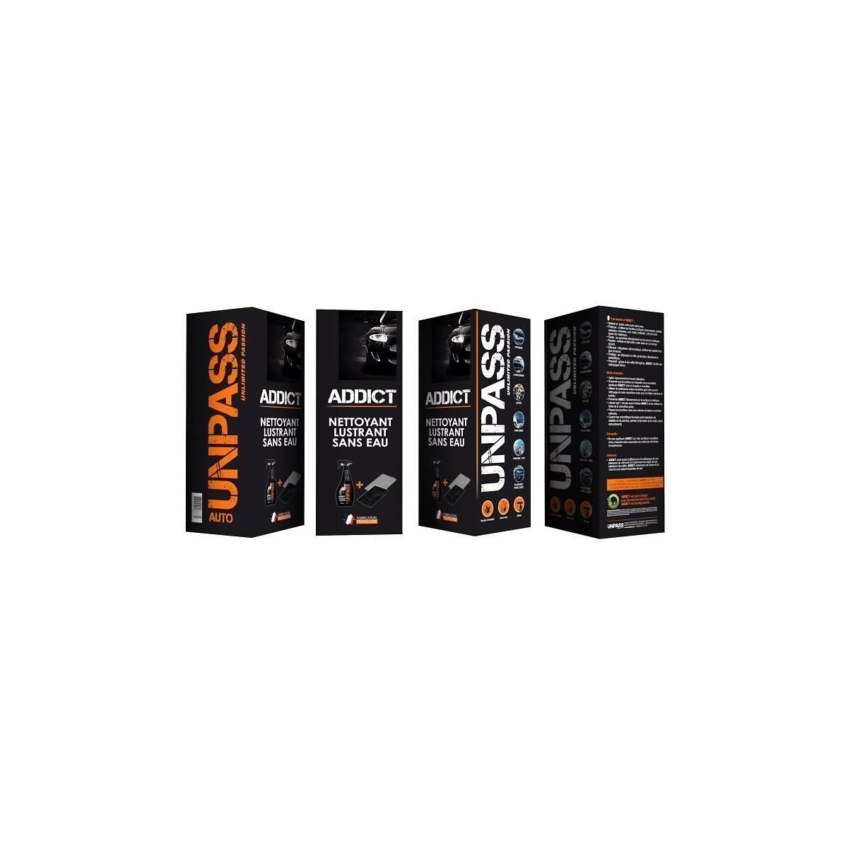 Pulvérisateur noir avec tete de pulvérisation + 2X microfibres format 35 x 35 cm . ADDICT nettoie et lustre votre AUTO sans eau. ADDICT s'utilise sur toutes surfaces (carrosserie, jantes, optiques, chromes, cuir, mate, brillante...) et sur tous types de matériaux, Facile : se pulvérise directement sur la zone a nettoye
