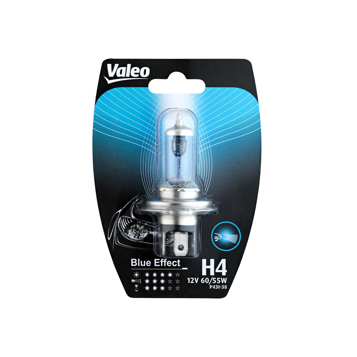 Les ampoules Blue Effect ont été développées pour donner une lumière similaire à la lumière du jour. La lumière bleue améliore votre visibilité et offre un confort visuel. Cet effet Xénon est produit par un revêtement bleu sur le verre, qui produit une lumière teintée de bleu pour offrir du style et une lumière puissante sur la route. Cette gamme est disponible aussi bien en éclairage qu'en signalisation. Avantages : - Forte puissance lumineuse. - Visibilité accrue et une conduite nocturne plus sûre. - Durée de vie renforcée, pour un plus grand plaisir de conduite. - Certification aux normes ECE R37 et 100% conforme aux usages sur la voie publique. Caractéristiques : - Type ECE : H4. - Voltage : 12 V. - Watt : 60/55 W. - Type de culot : P43t-38. Plus de 40% des accidents de la route ont lieu de nuit bien que le trafic soit 10 fois moins dense qu'en journée : la qualité de vos ampoules est un facteur clé de sécurité. Valeo propose une gamme complète de produits d'éclairage : projecteurs, antibrouillards, éclairages d'intérieur, clignotants pour couvrir tous les besoins du marché. Nous vous proposons différents types de lampes halogènes afin que vous puissiez choisir celle qui correspond le mieux à vos besoins.