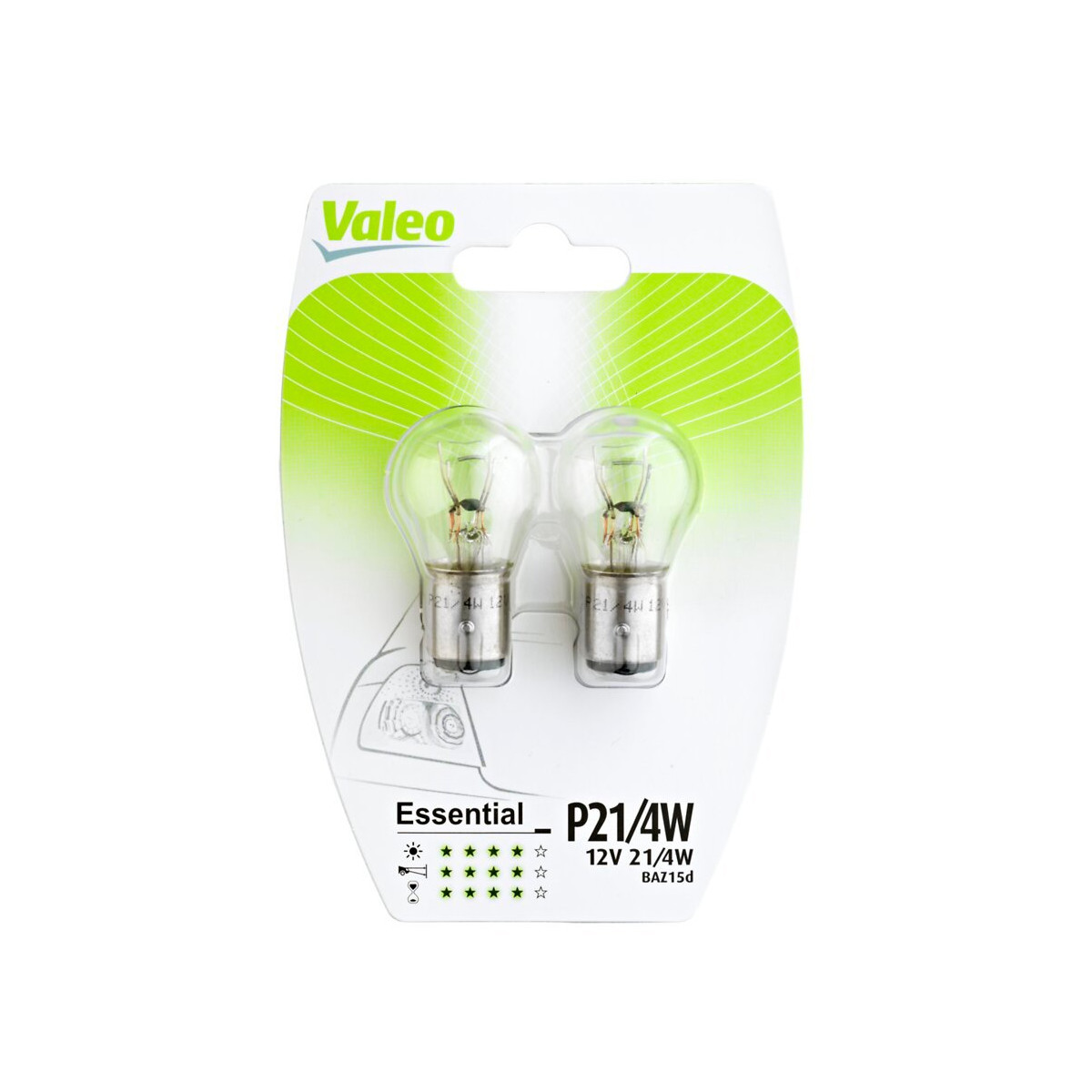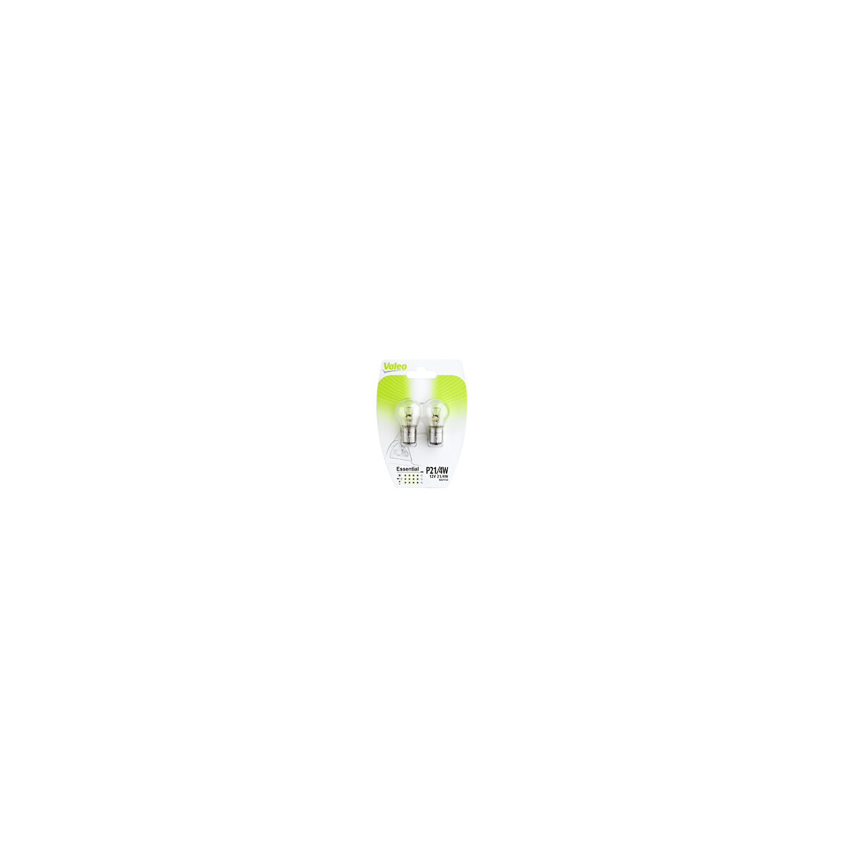Les ampoules de signalisation Valeo Essential sont idéales pour une utilisation fiable à l'extérieur du véhicule (feu de recul, clignotant, feu de brouillard arrière, feu de stationnement, feu éclaireur de plaque). Avantages : - Durée de vie renforcée. - Certification aux normes ECE R37 et 100% conforme aux usages sur la voie publique. Caractéristiques : - Type ECE : P21/4W. - Voltage : 12 V. - Watt : 21/4 W. - Type de culot : BAZ15d. - Quantité : 2. Plus de 40% des accidents de la route ont lieu de nuit bien que le trafic soit 10 fois moins dense qu'en journée : la qualité de vos ampoules est un facteur clé de sécurité. Valeo propose une gamme complète de produits d'éclairage : projecteurs, antibrouillards, éclairages d'intérieur, clignotants pour couvrir tous les besoins du marché. Nous vous proposons différents types de lampes halogènes afin que vous puissiez choisir celle qui correspond le mieux à vos besoins.