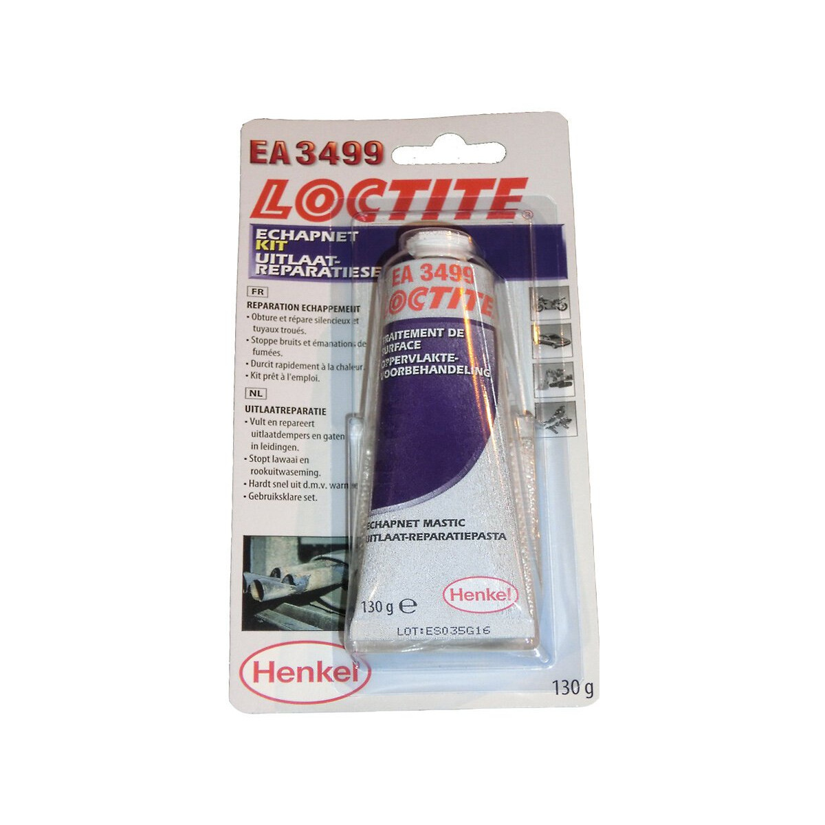 Mastic échappement pour la réparation des tuyaux et silencieux troués. Durcit rapidement à la chaleur et stoppe les bruits et émanations de fumées. Résiste jusqu'à 800°C. Temps de prise : 30 minutes.