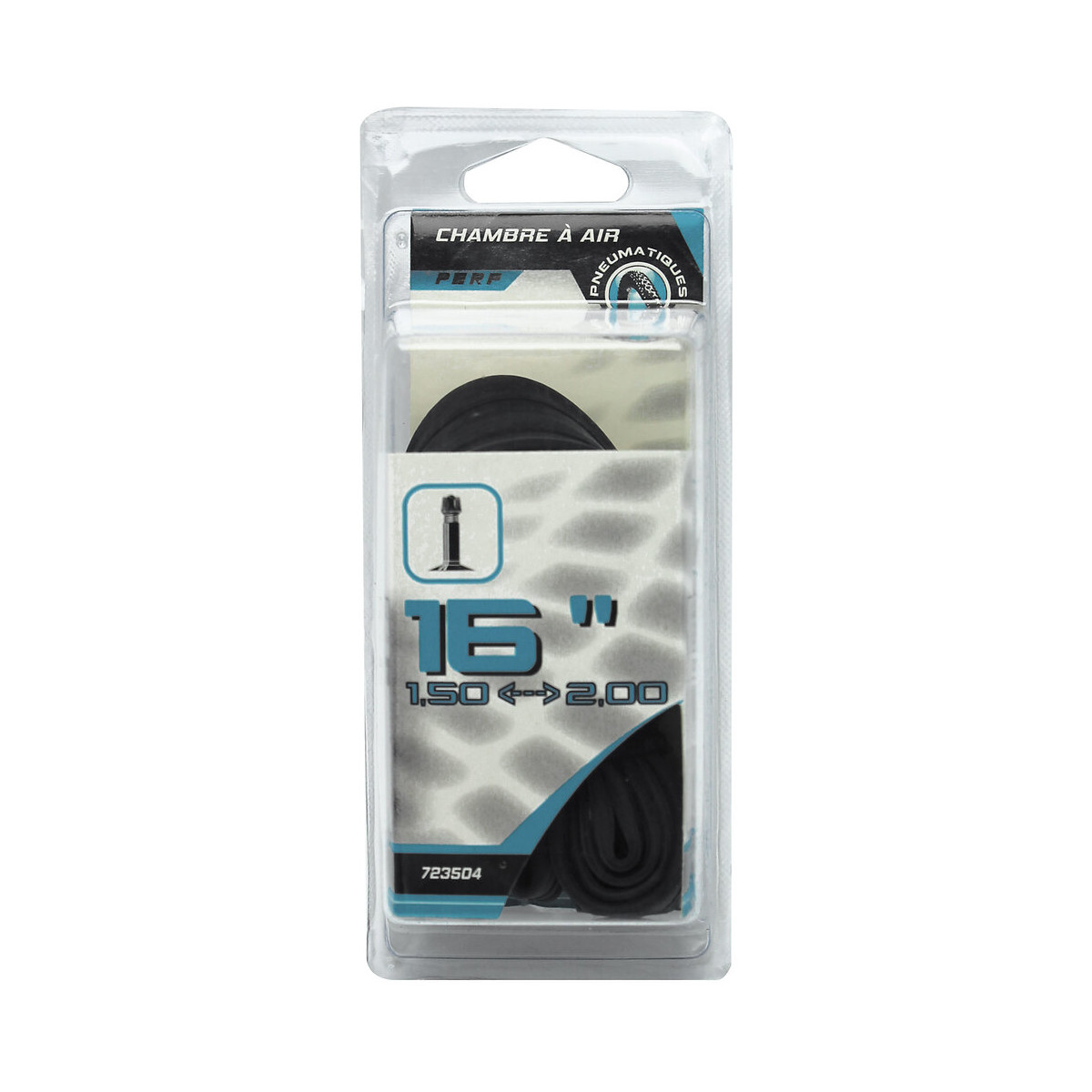 Chambre à air 16" grosse valve type Schrader. Affectations les plus courantes : - 40-305 : 16" x 1,50 - 47-305 : 16" x 1,75 - 50-305 : 16" x 1,90 - 50-305 : 16" x 1,95 - 54-305 : 16" x 2,00.