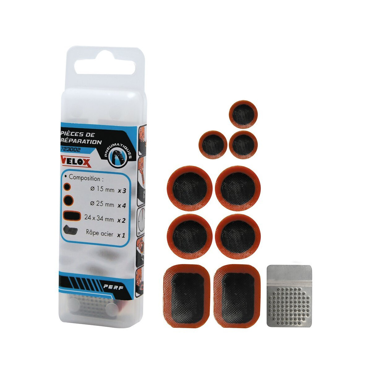 Contient : 3 pièces diamètre 15 mm + 4 pièces diamètre 25 mm + 2 pièces diamètre 24x34 mm + 1 râpe acier. En boîte plastique permettant le transport et la conservation des accessoires dans les meilleures conditions.