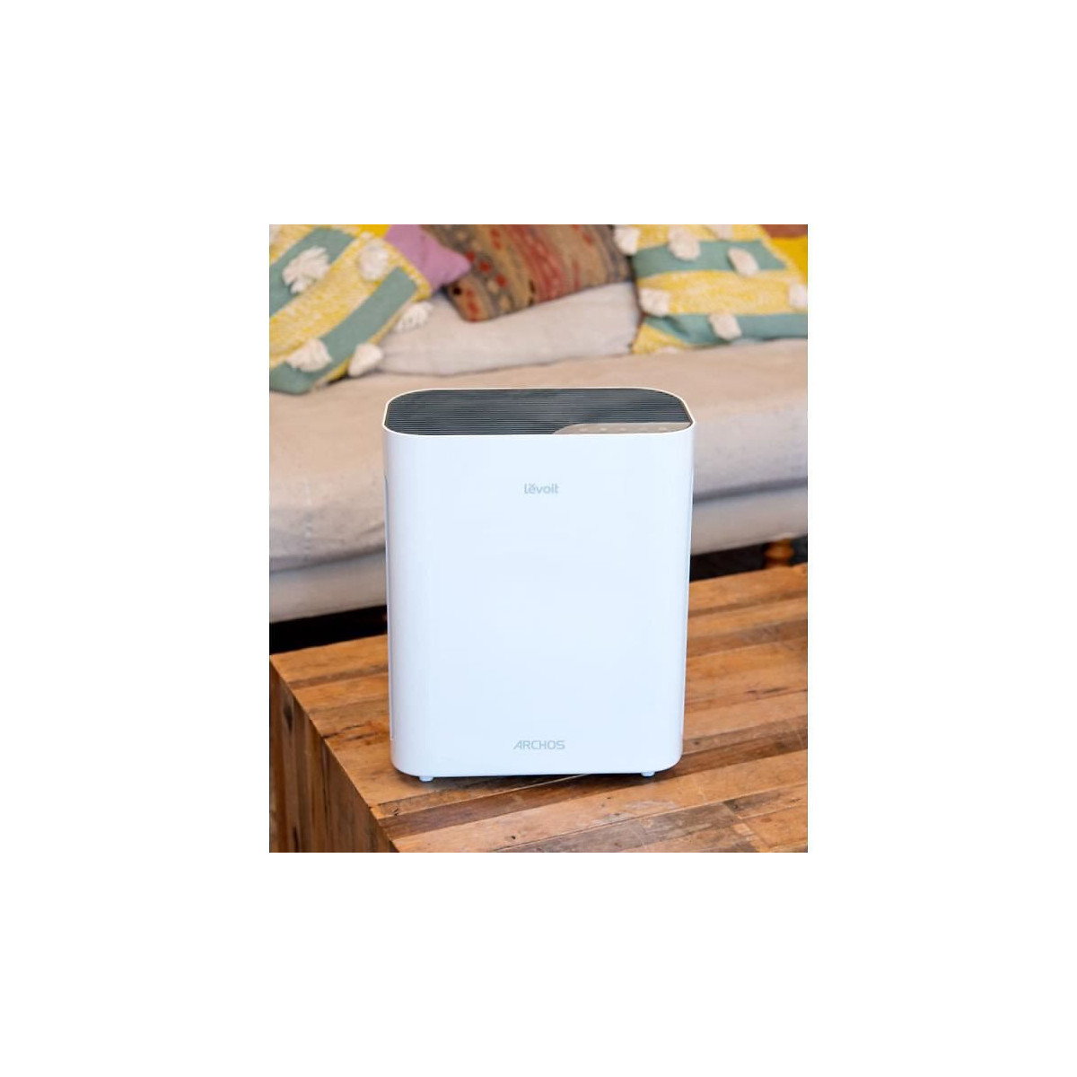 L'ARCHOS Air purifier 28 purifie une surface de 221m3/h et doté d'une puissance de 55W et de 3 vitesses dont un mode nuit. Il est composés de trois filtres pour capturer 99,97% des particules : - Un filtre pour les grosses particules : ce premier filtre arrete les fibres, cheveux et poils d'animaux - Un filtre HEPA pour capturer les particules fines comme le pollen, les acariens, les polluants atmosphériques et chimiques - Un filtre a charbon pour neutraliser les odeurs et les fumées Un voyant LED intégré s'allume lorsque le filtre doit etre changé ou est mal installé. - Pour une durée prolongée un filtre en plus est offert