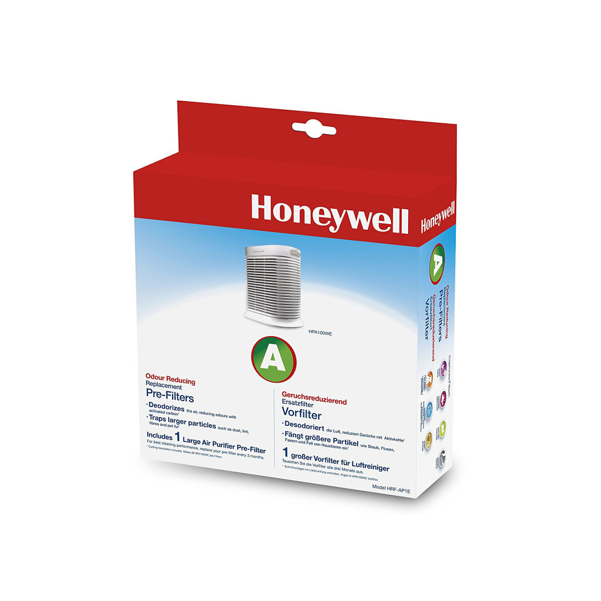 hrf-ap1e - Pré-filtre Honeywell HRF-AP1E pour purificateur d'air HAP100WE4. Elimine 99,95% des allergènes et polluants. Réduit les odeurs domestiques désagréables et autres gazs. Indicateur électronique de remplacement des filtres. - Compatible avec le purificateur d'air HAP100WE4. Coloris : Blanc. A remplacer tous les 3 mois. Dimensions du produit (L x l x h) : 21 x 7 x 25,7 cm. Poids de l'article : 222 g.
