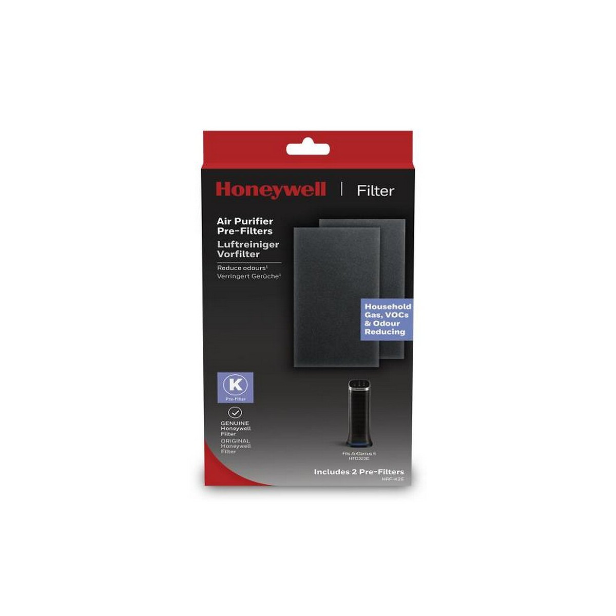 hrf-k2e - Pré-filtre Honeywell HRF-K2E pour purificateur d'air HFD323E2. - Type de produit : Pré-filtre. Compatibilité : Pour purificateur d'air HFD323E2. Contient 2 préfiltres réducteurs d'odeur et COV. A remplacer tous les 3 mois.
